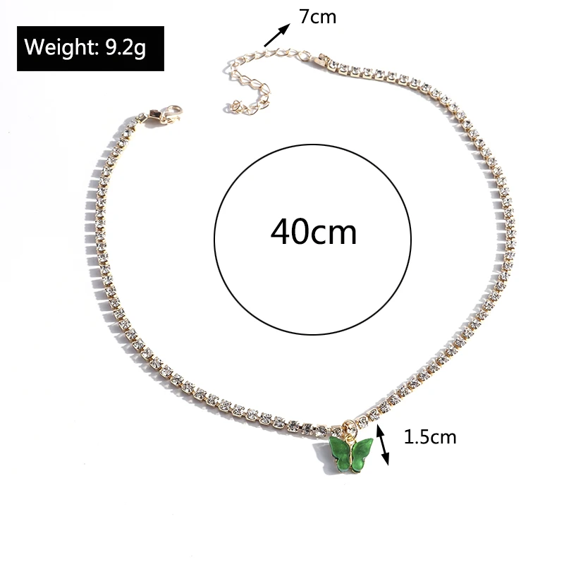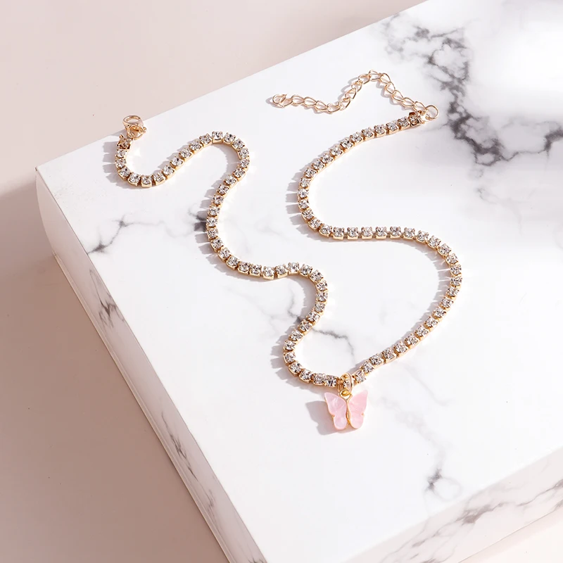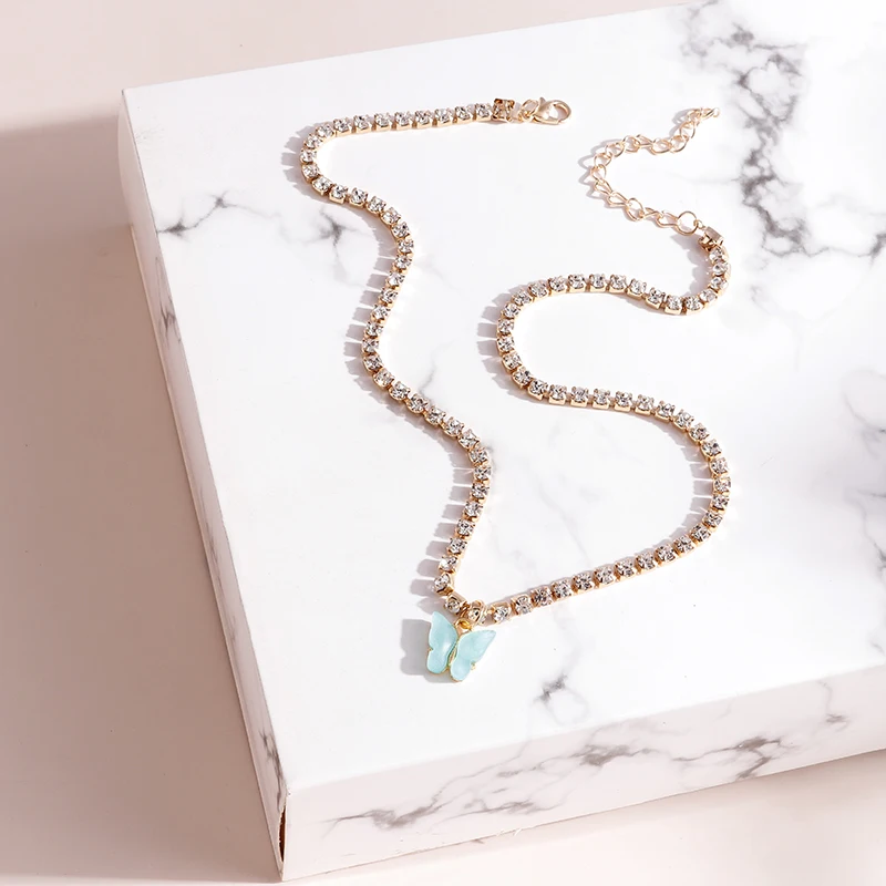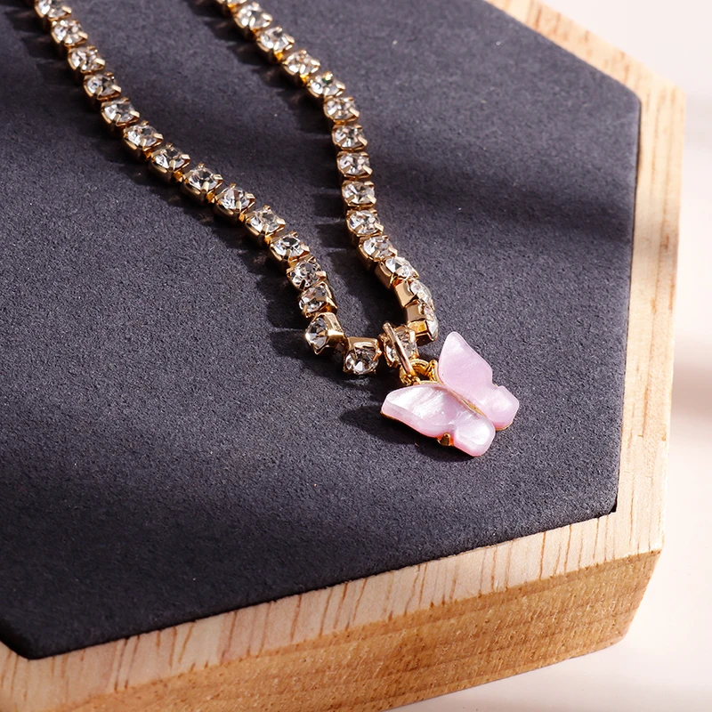 Korean Acrylic Colorful Butterfly Pendants Necklaces for Women Simple Style Crystal Necklace Jewelry Accessories