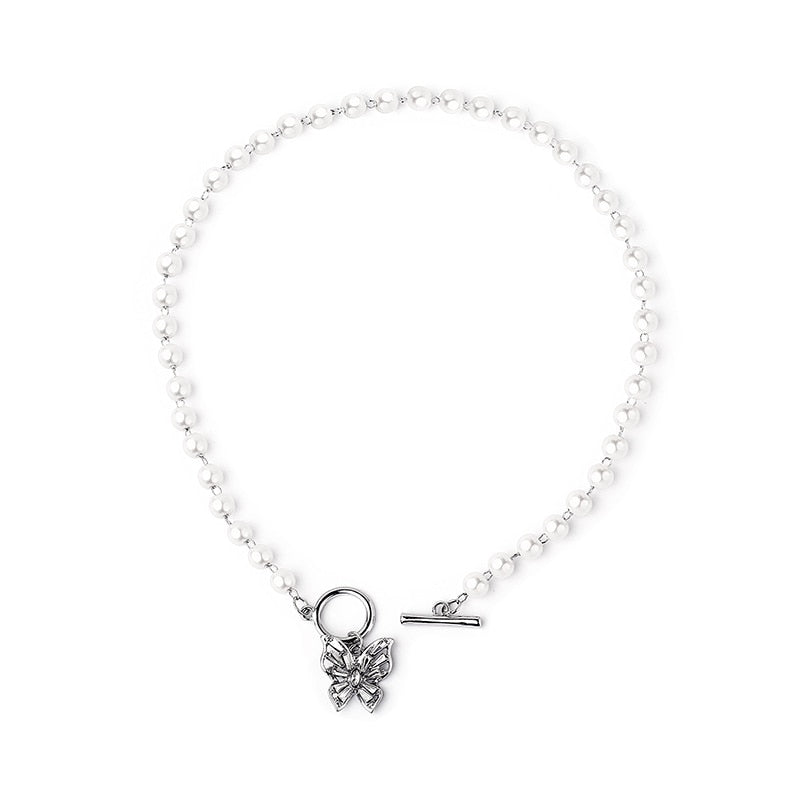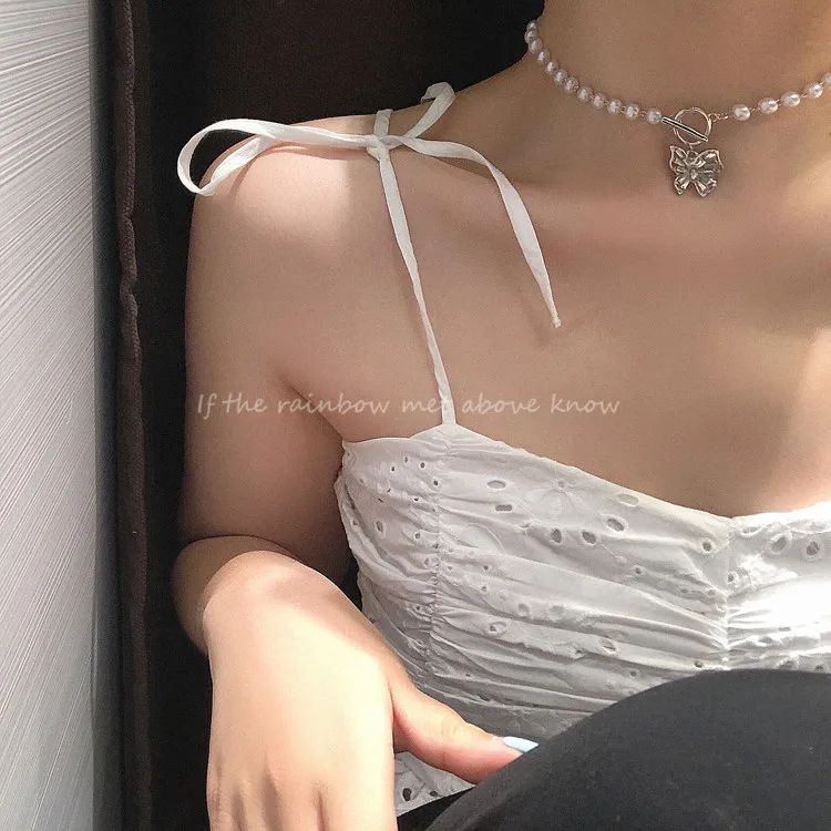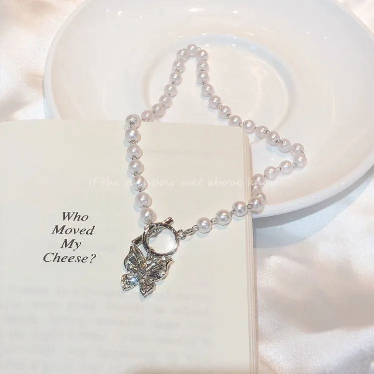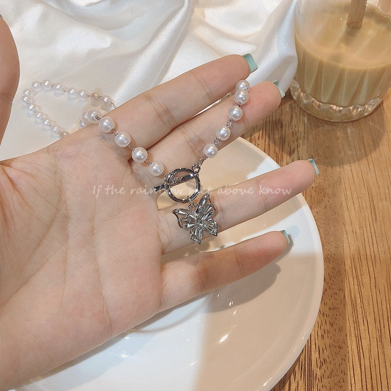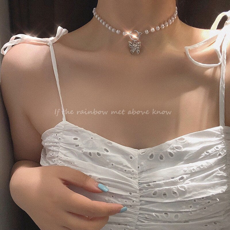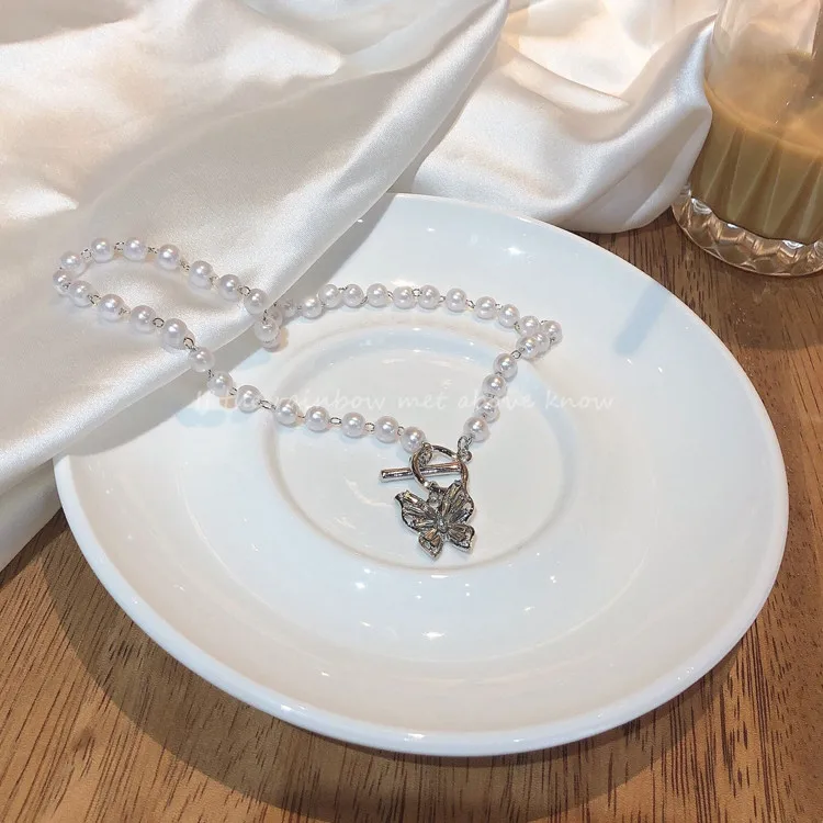 Korean Cute Butterfly Choker Necklace For Women Beaded Chain 2021statement Pendant Female Collar pearl Jewelry