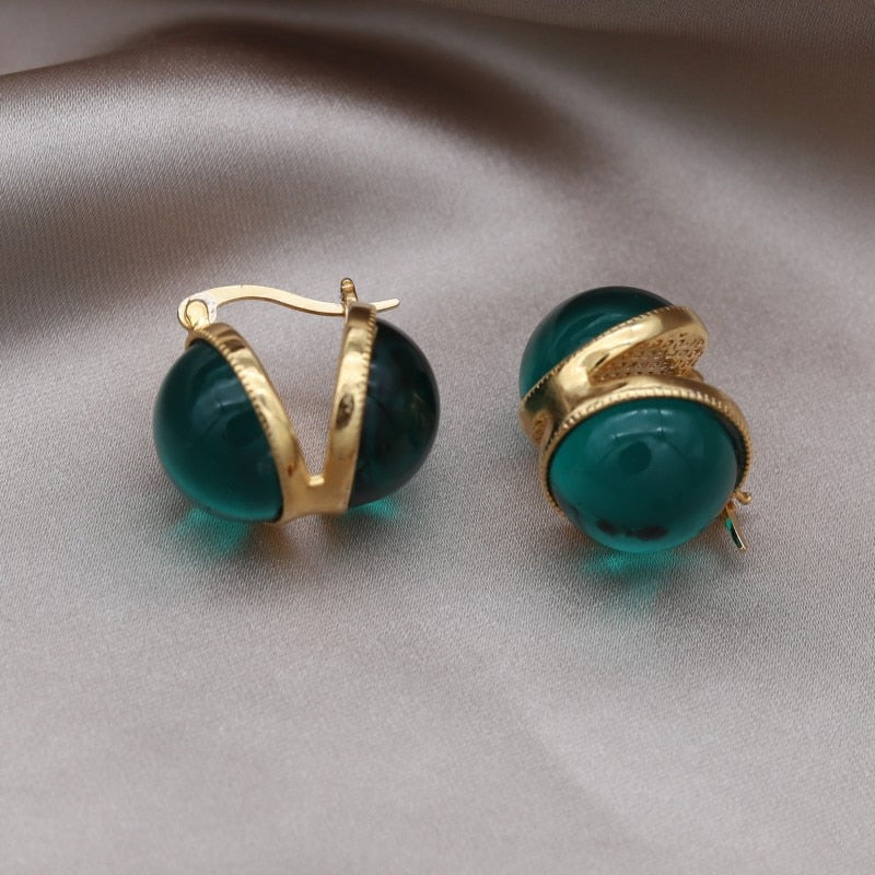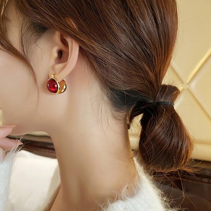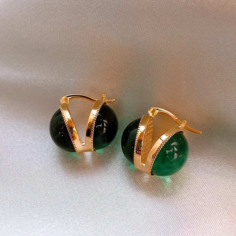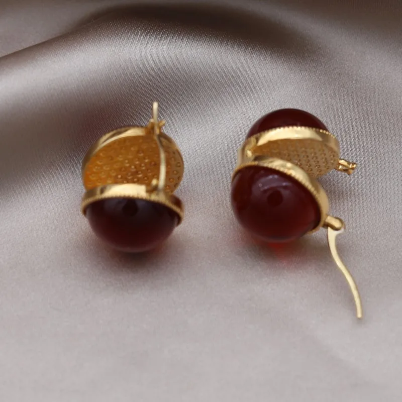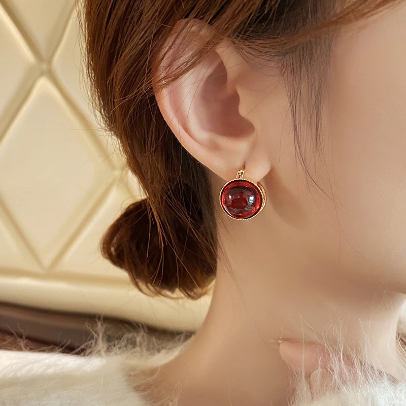 Korean Design Jewelry 14K Gold plated Simple Round Glass Earrings Retro Women's Daily Work Accessories