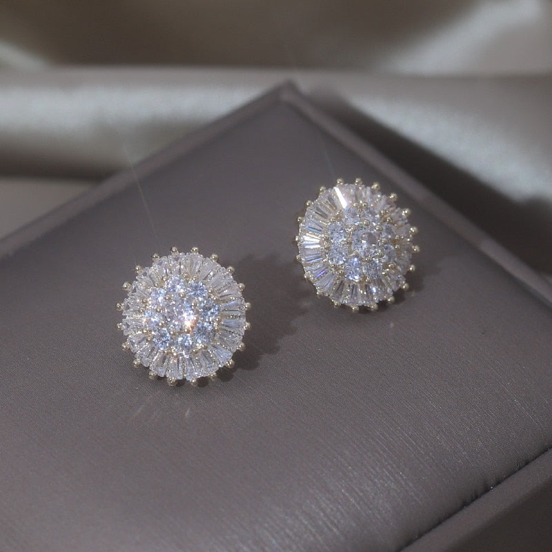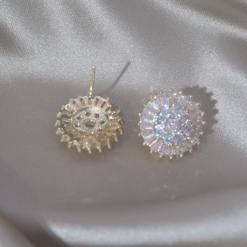 Korean Design Jewelry 14K Gold plated Simple Round Zircon Earrings Elegant Women's Daily Work Accessories