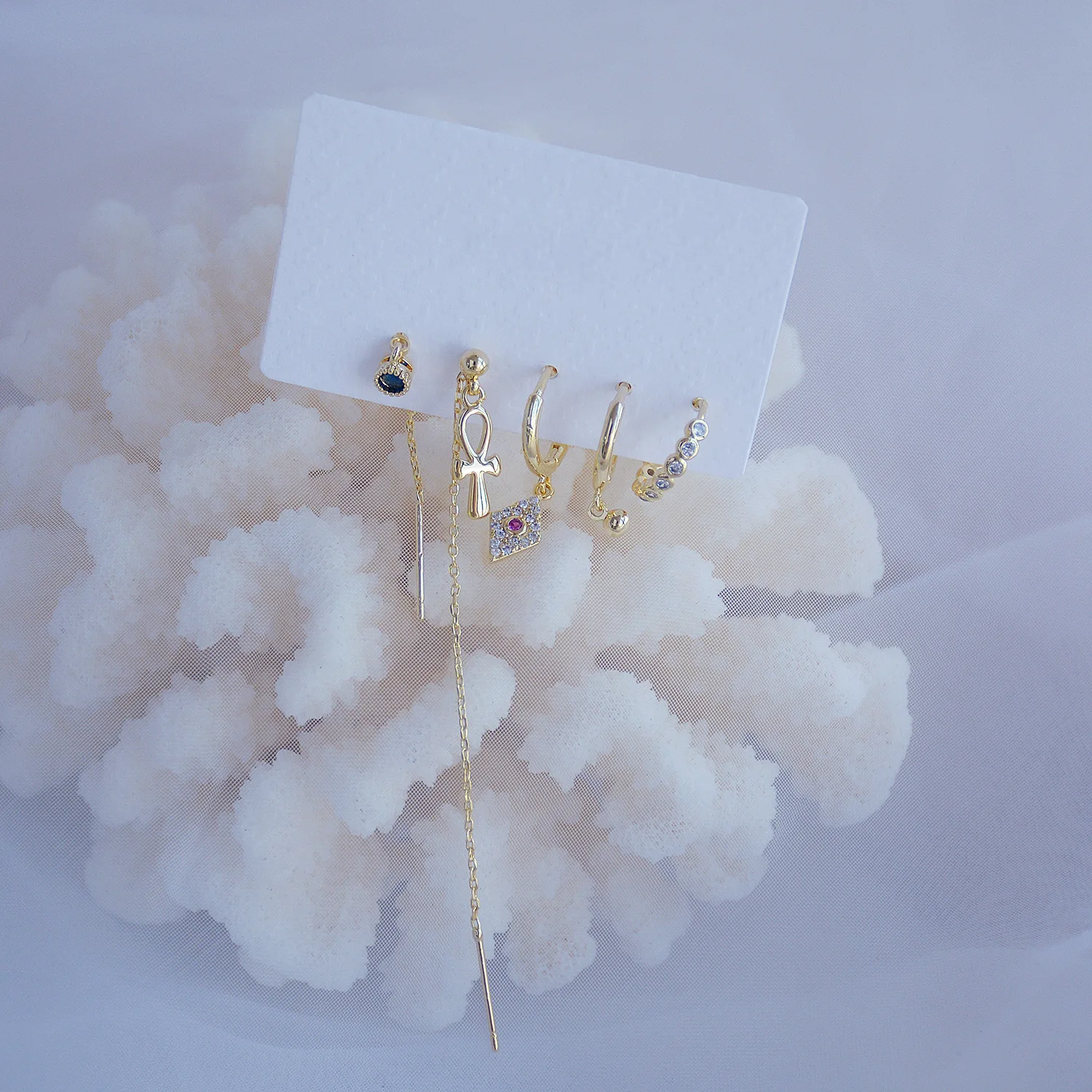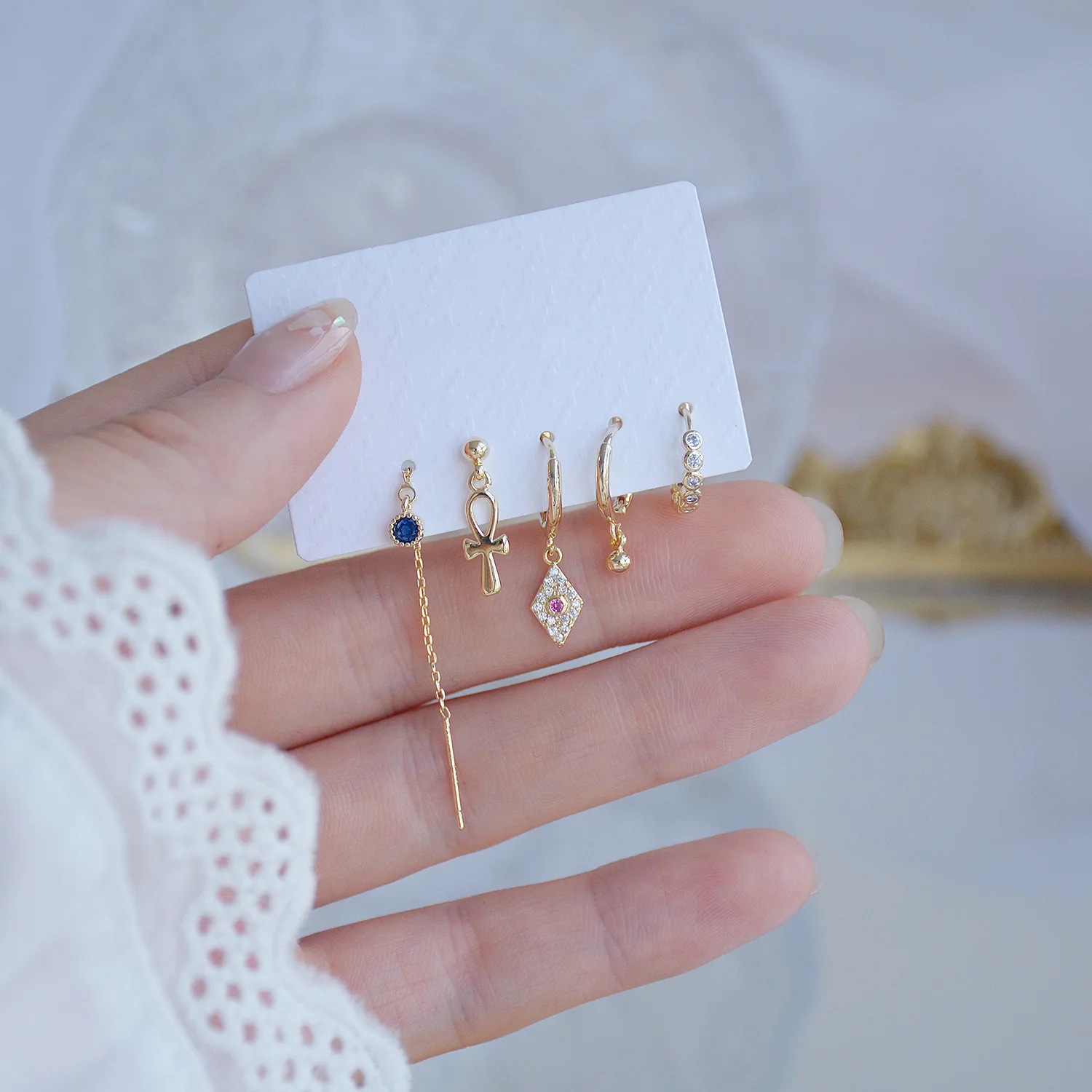 Korean Design Jewelry 5-piece Set Bowknot Geometric Long Tassel Female Wild Earrings