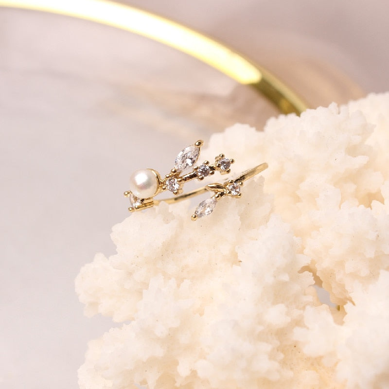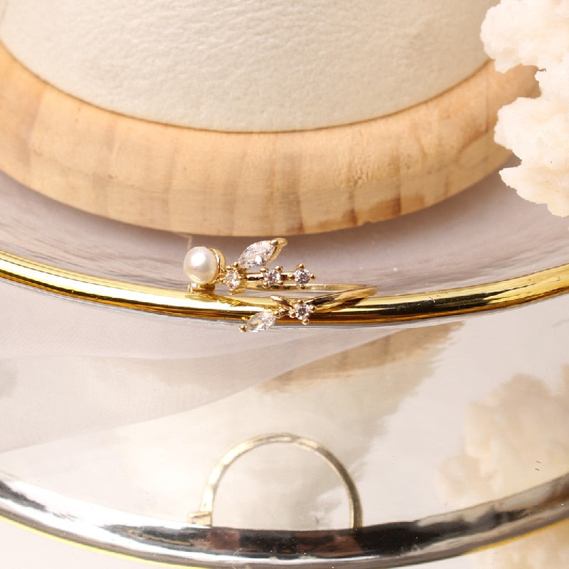 Korean design jewelry exquisite copper inlaid zircon freshwater pearl opening adjustable female index finger ring