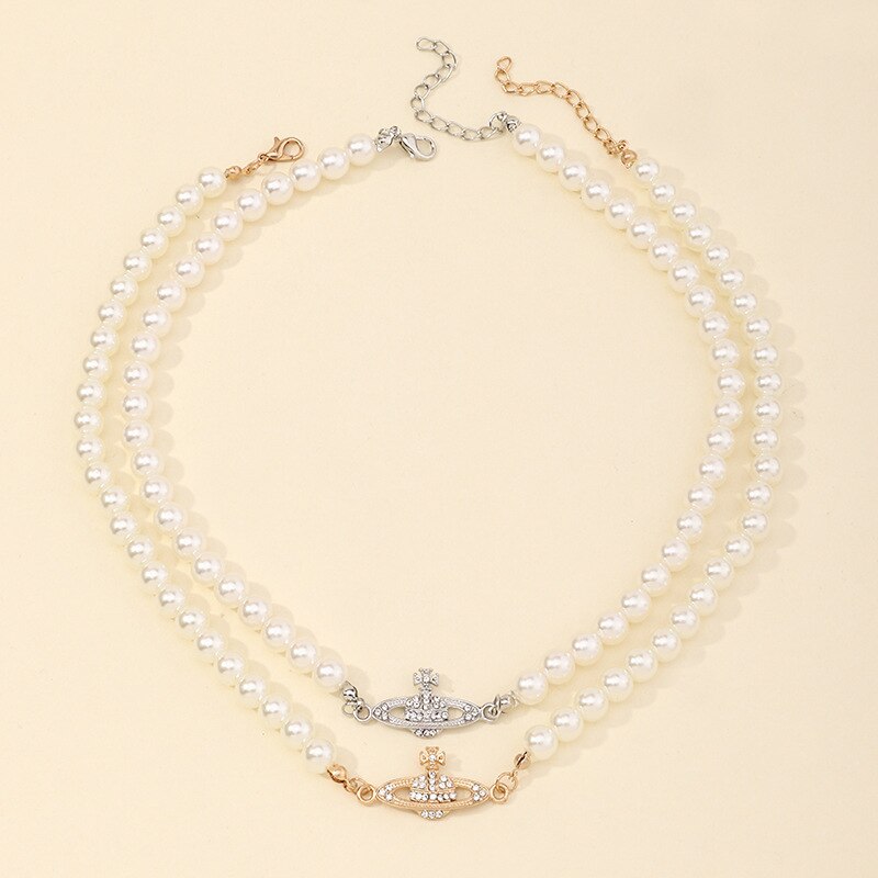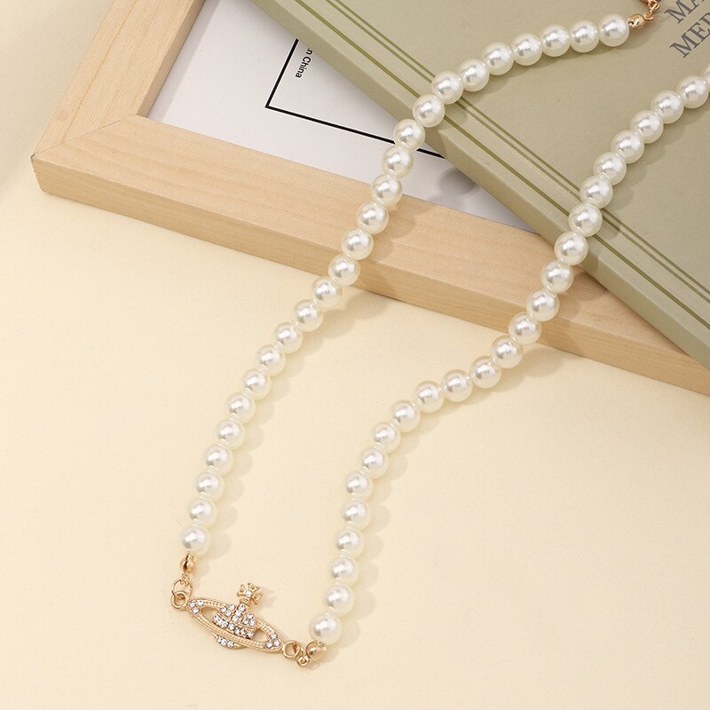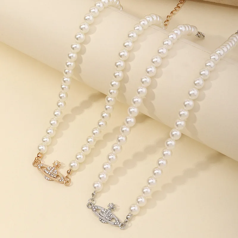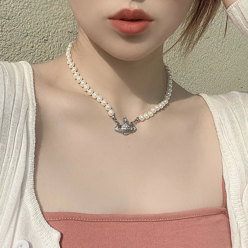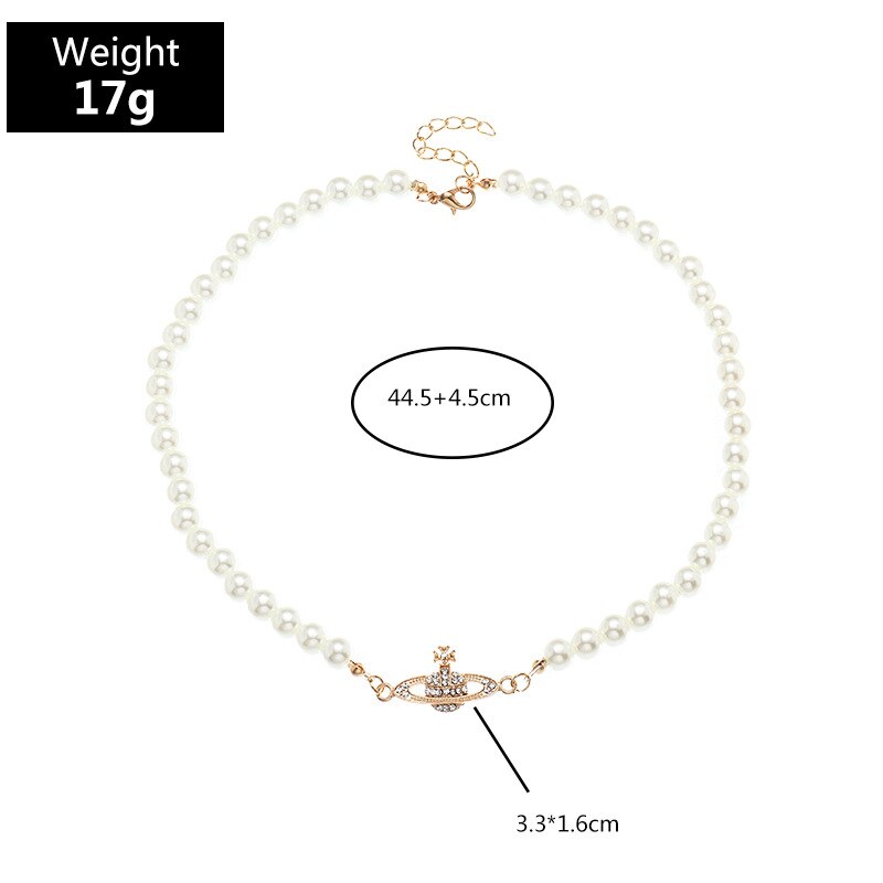 Korean Imitation Pearl Choker Necklace for Women Beaded Statement Necklace Temperament Planet Pendant Female Collier