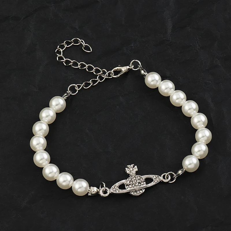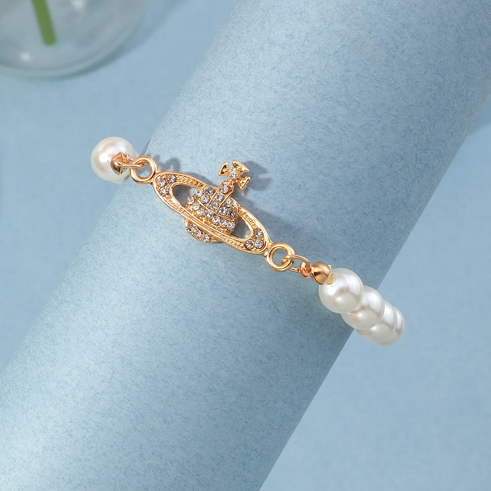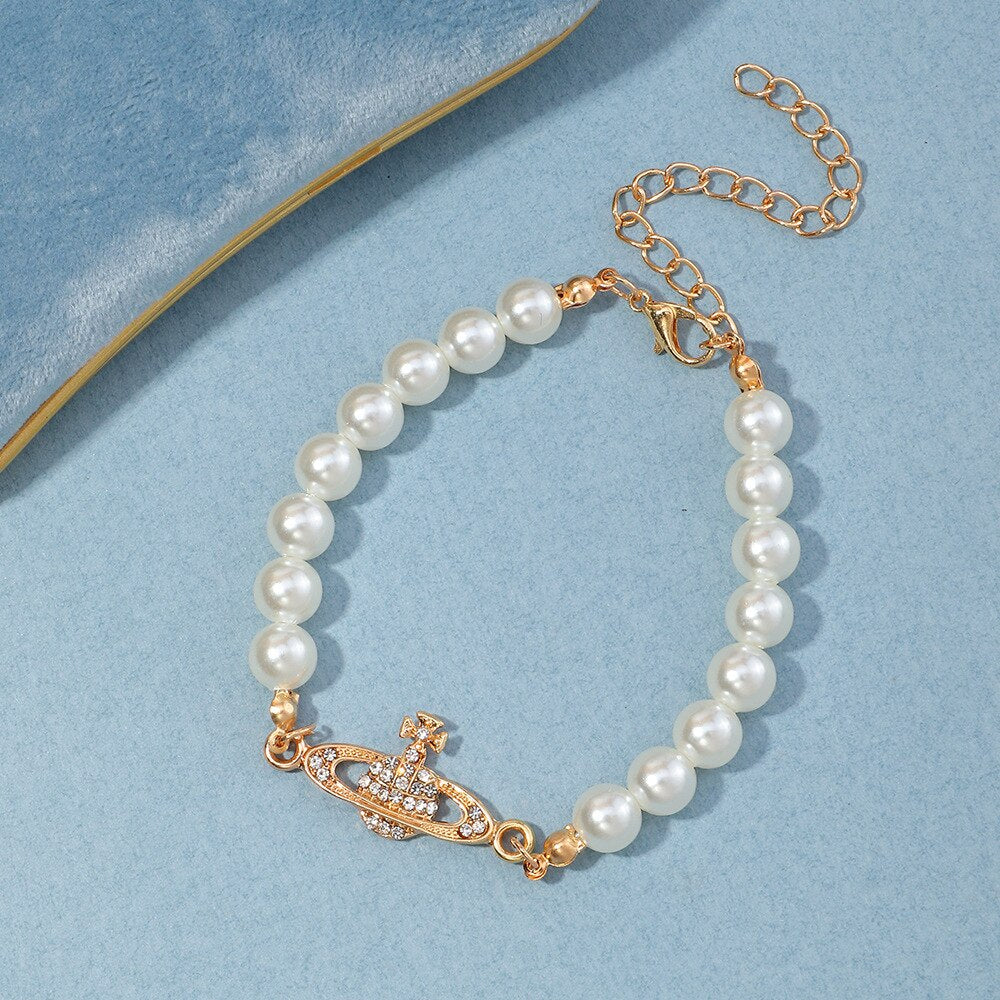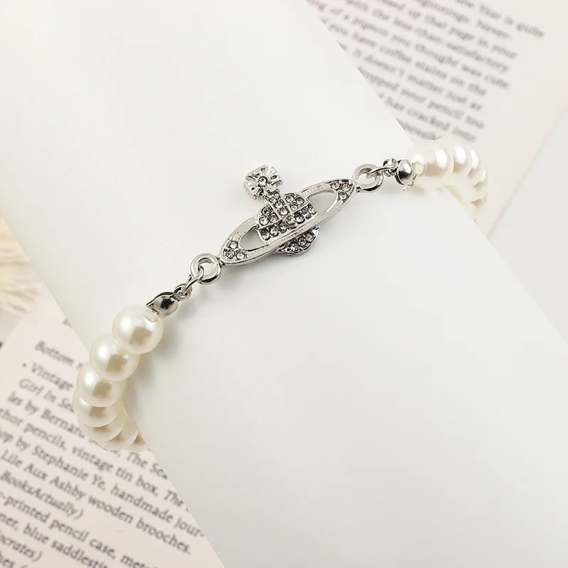 Korean Imitation Pearl Choker Necklace for Women Beaded Statement Necklace Temperament Planet Pendant Female Collier