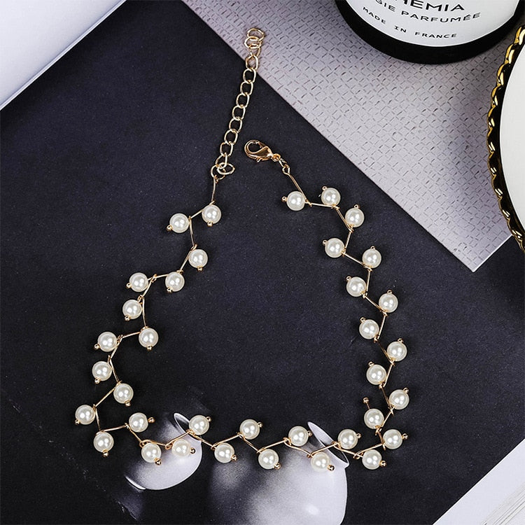 Korean Jewelry Simple Short Necklace Imitation Pearl Necklace Gold Necklace Women Statement Necklace Jewelry Choker