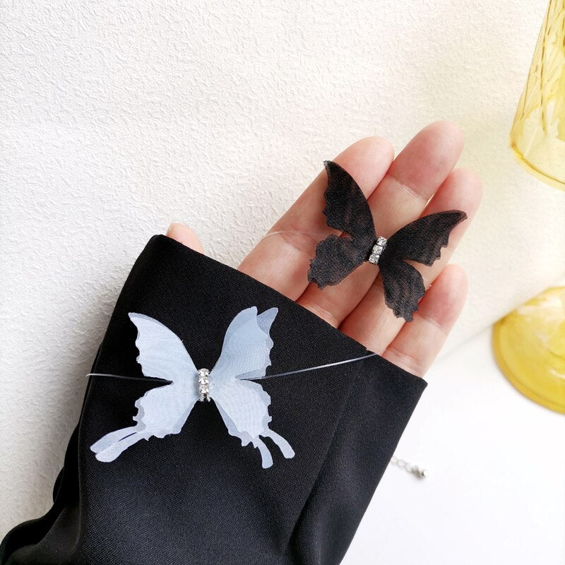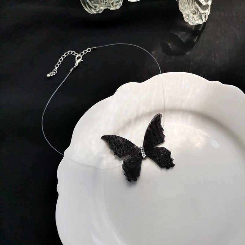 Korean Summer Fairy Butterfly Fish Line Pendant Necklace Girl's Beauty Diamond Charm Neck Chain Sweet Bone Chain Jewelry 321