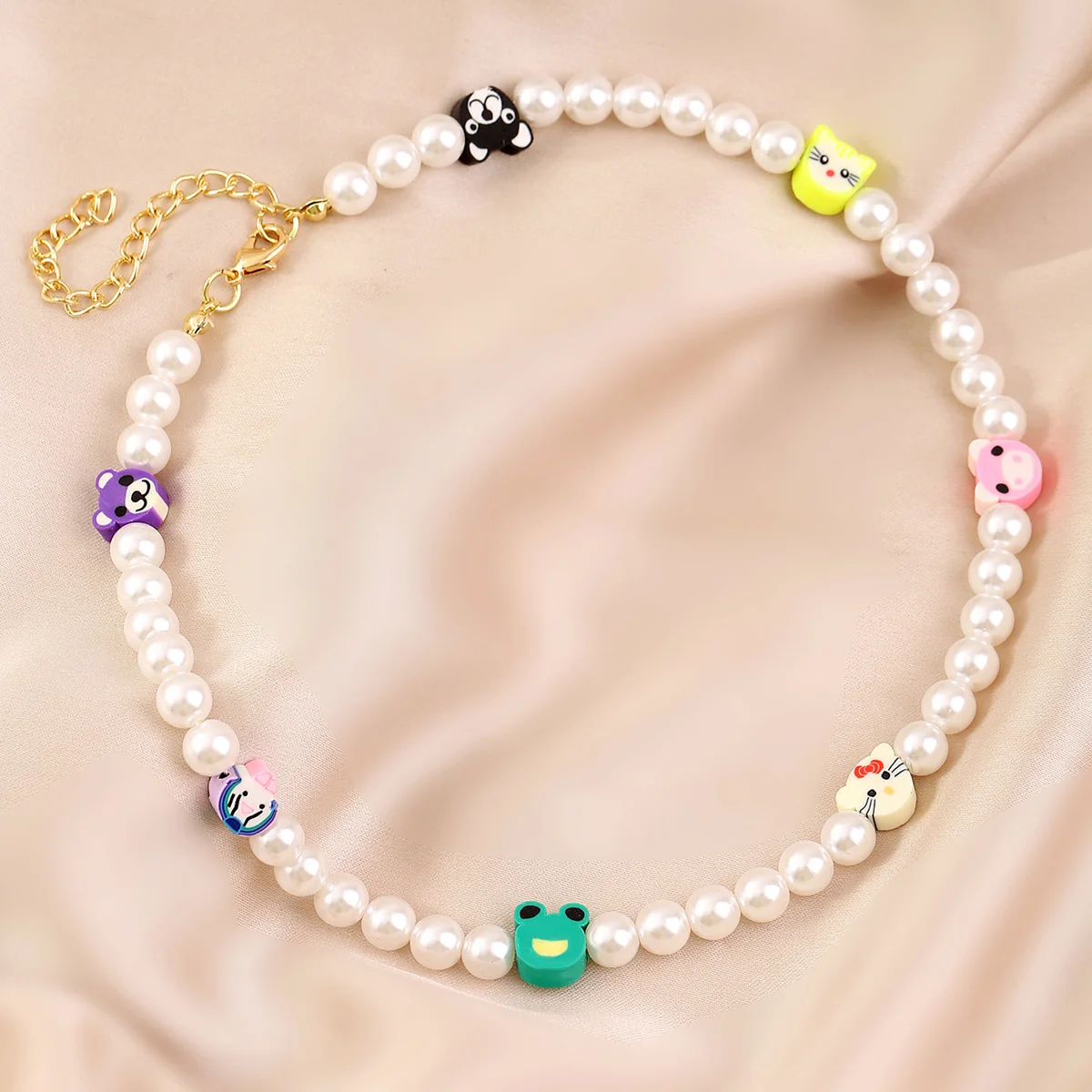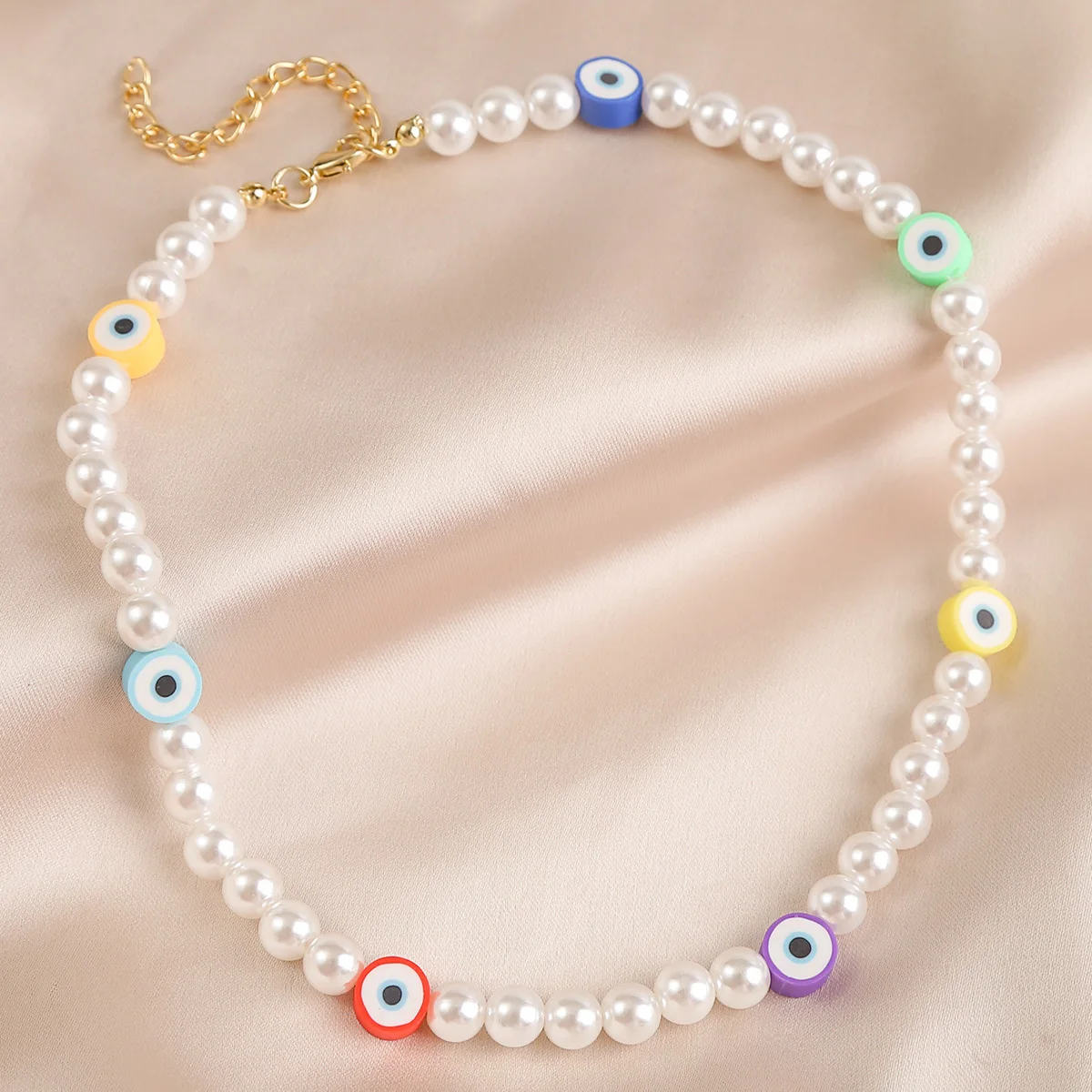 Korean Trendy Simulated Pearl Choker Necklace For Women Bohemian Colorful Handmde Face Bead Collar Random Color Jewelry 2021