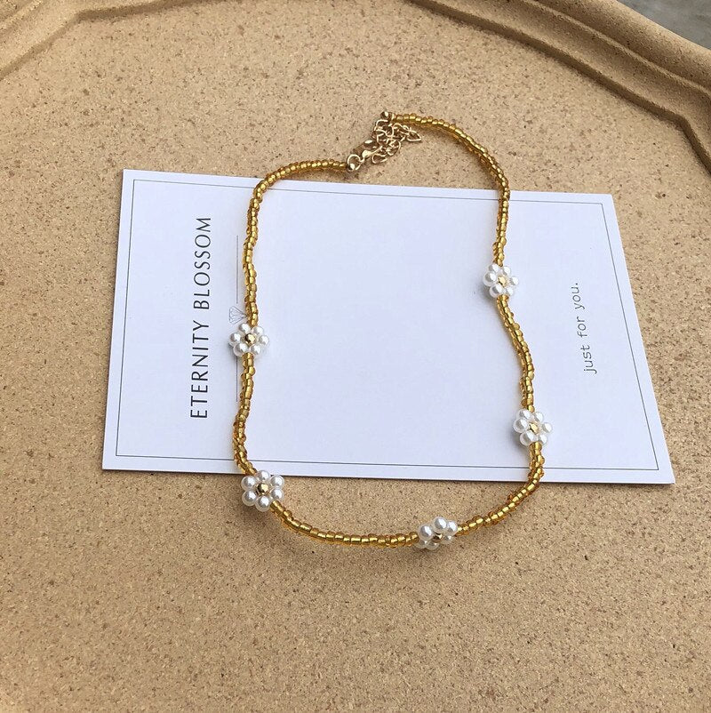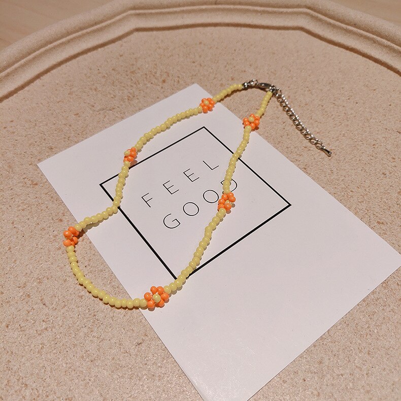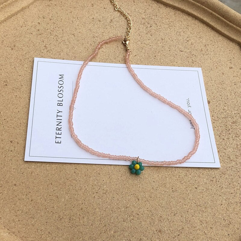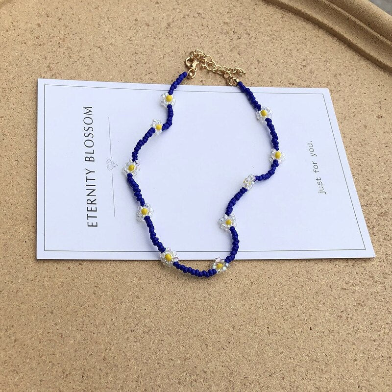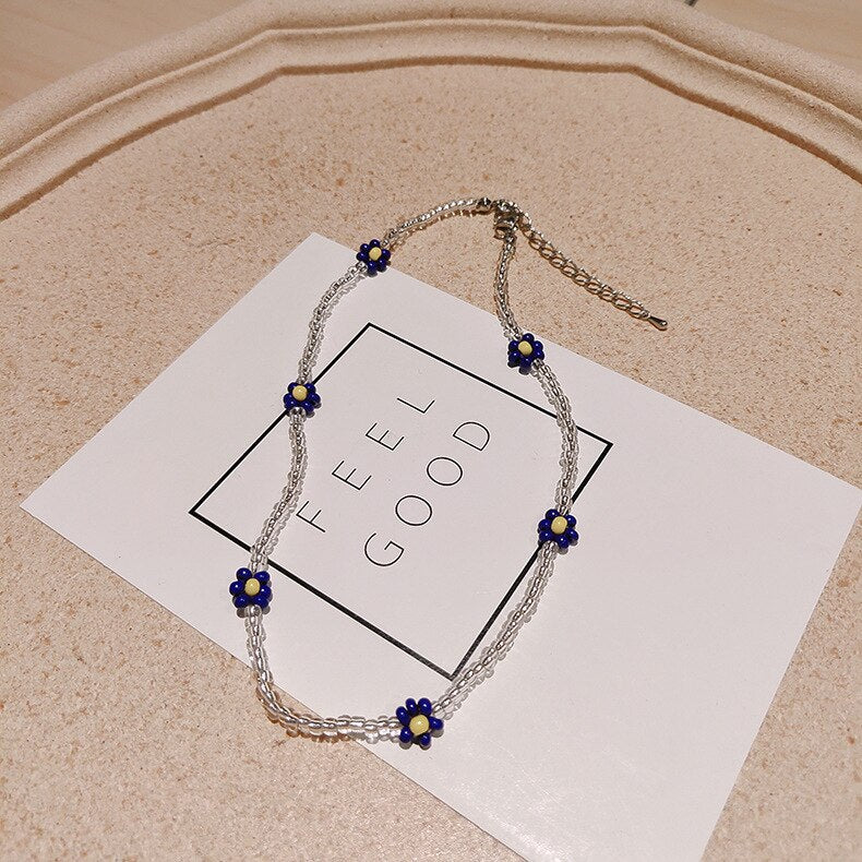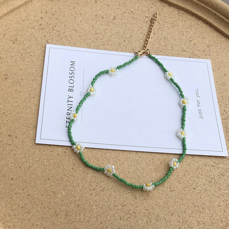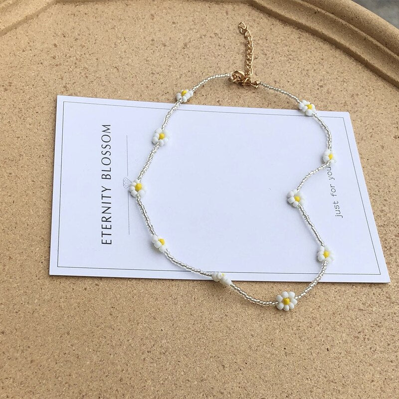 Kpop Beaded Necklace Ins Hand-woven Small Flowers Daisies Necklace Women Chic Clavicle Choker Aesthetic Accessories