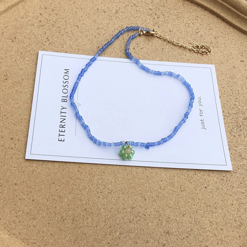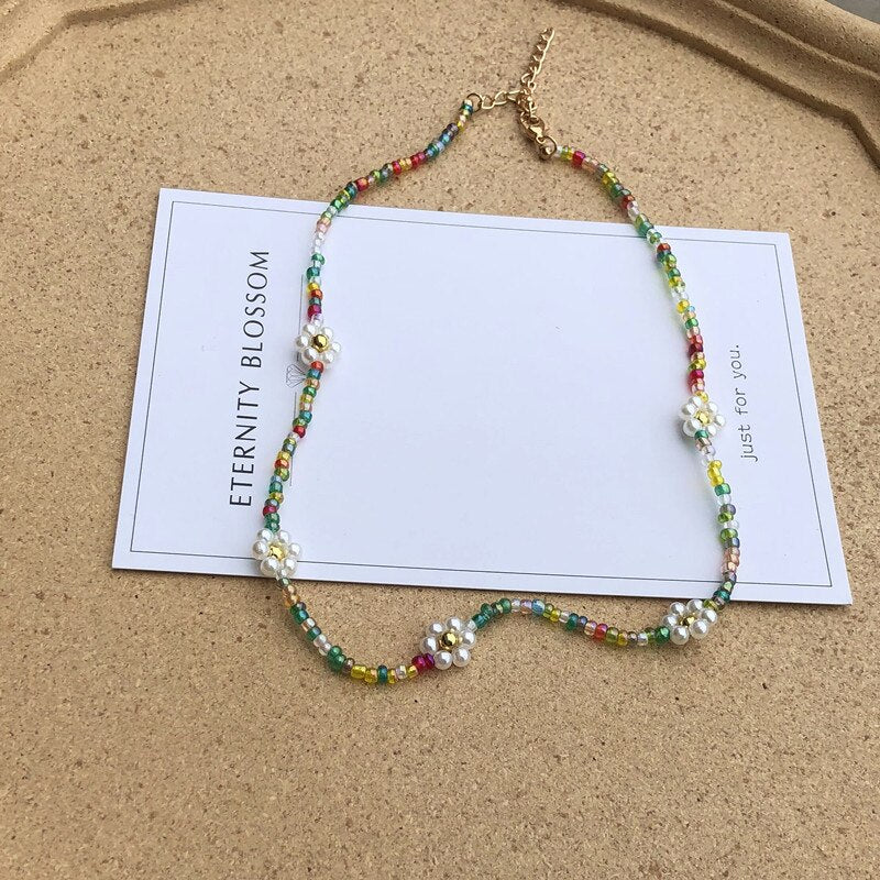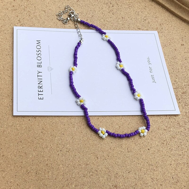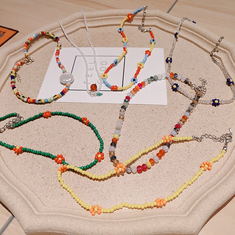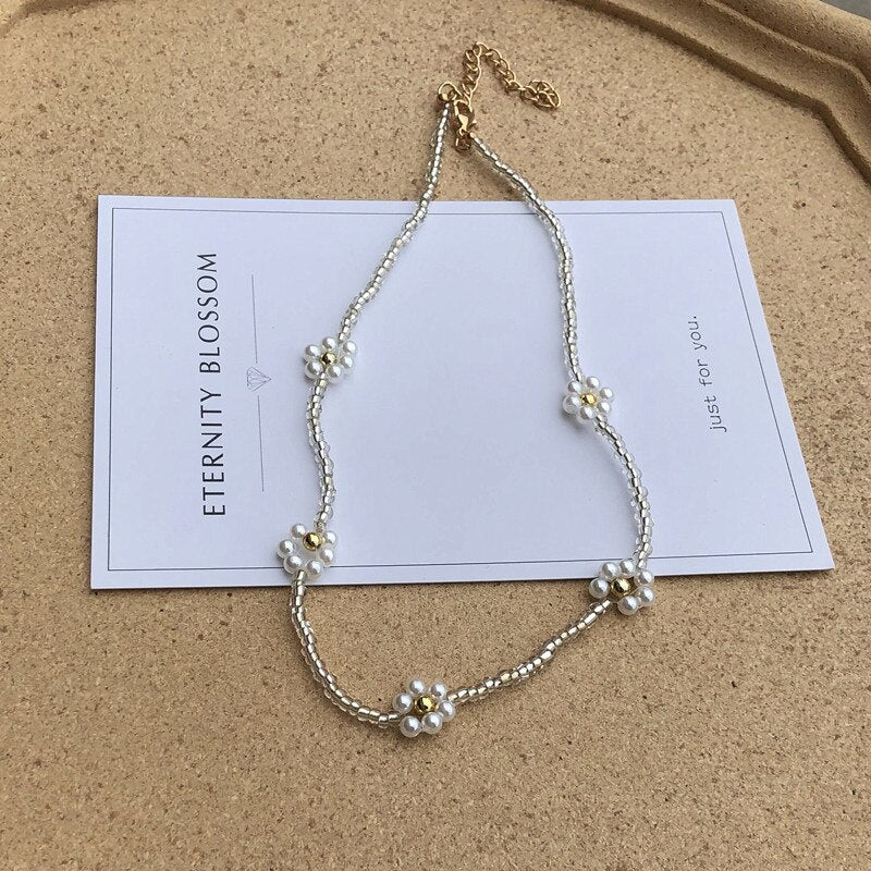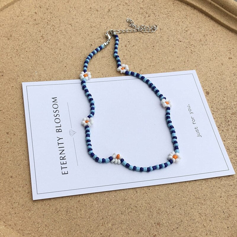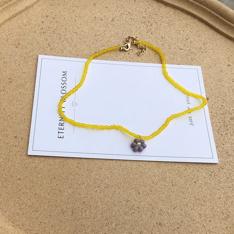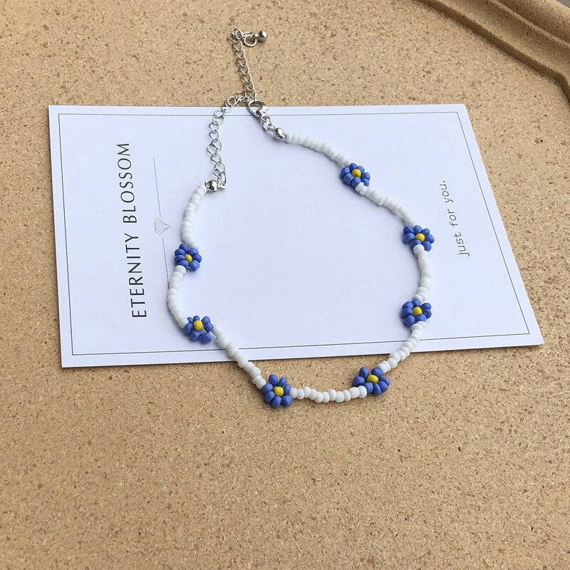 Kpop Beaded Necklace Ins Hand-woven Small Flowers Daisies Necklace Women Chic Clavicle Choker Aesthetic Accessories