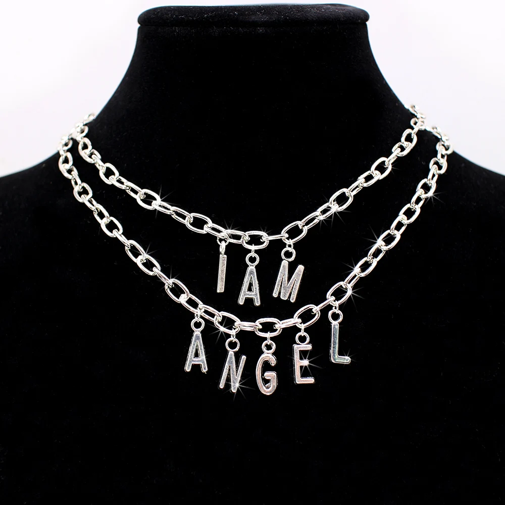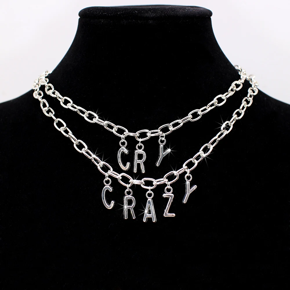 Kpop Gothic Style Women Neck Chain Streetwear CRY BABY Couple Pendant And Necklace Letter Word Collar for Girl Goth Jewelry 2021