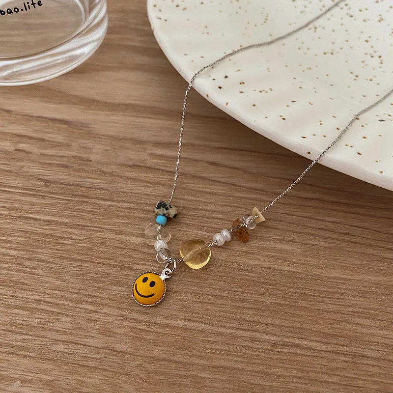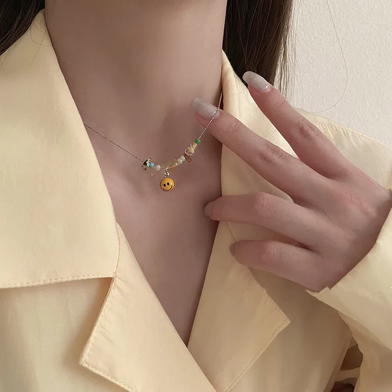 Kpop Smile Chokers Necklaces Multicolor Beading Necklaces for Women Girls Funny Boho Accessories