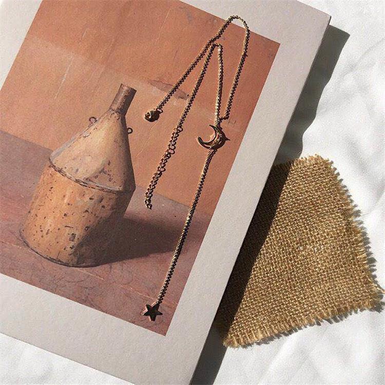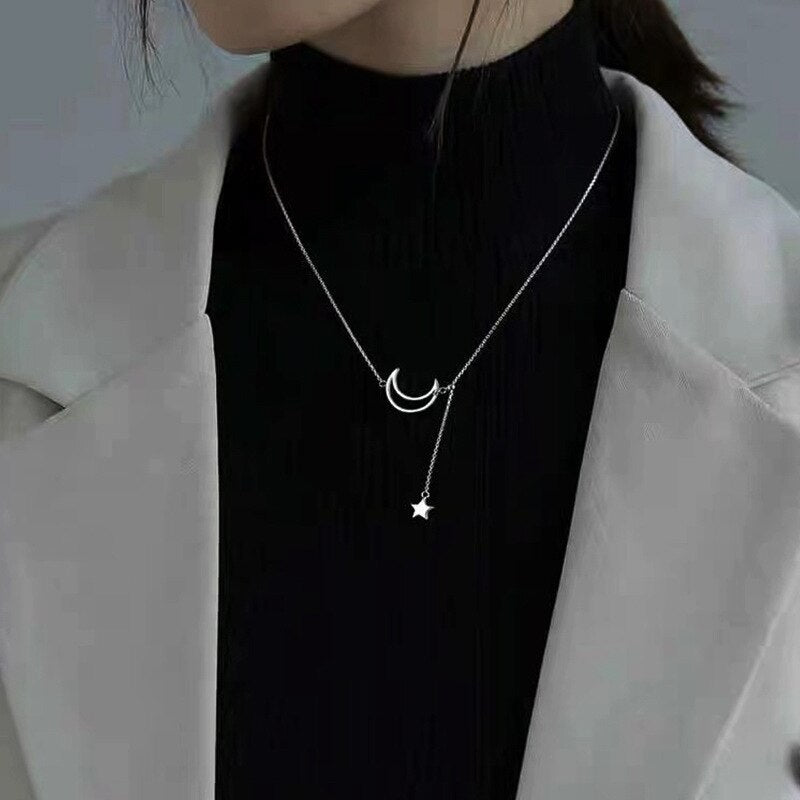 Kpop Star Moon Pendant Choker Necklaces For Women 2021 Trendy Tassel Jewelry Necklaces Clavicle Chain Collar De Mujer
