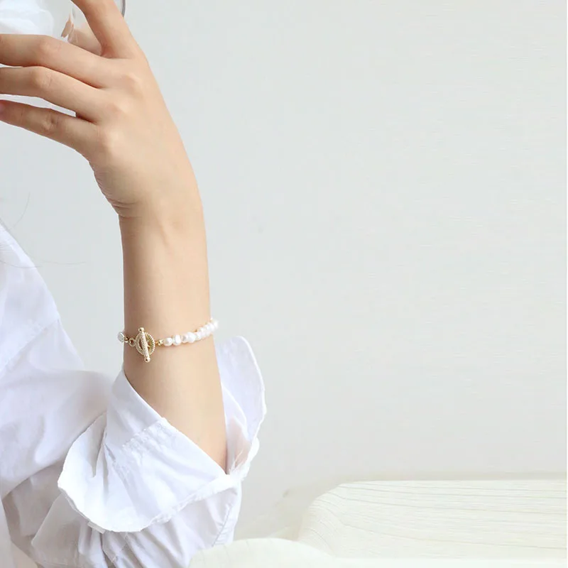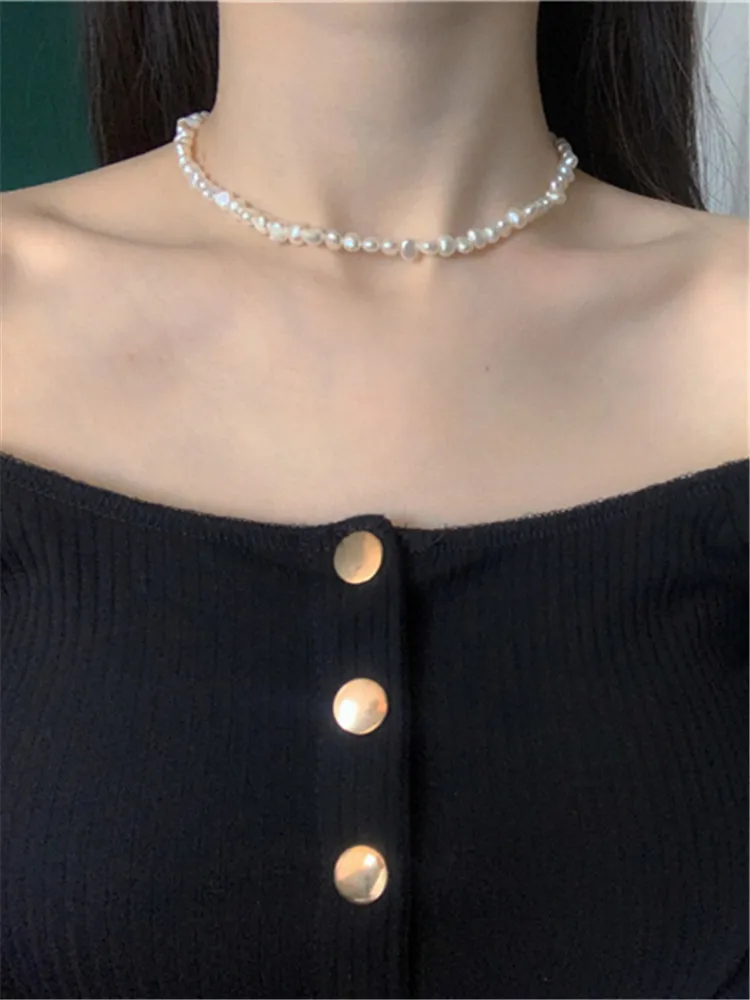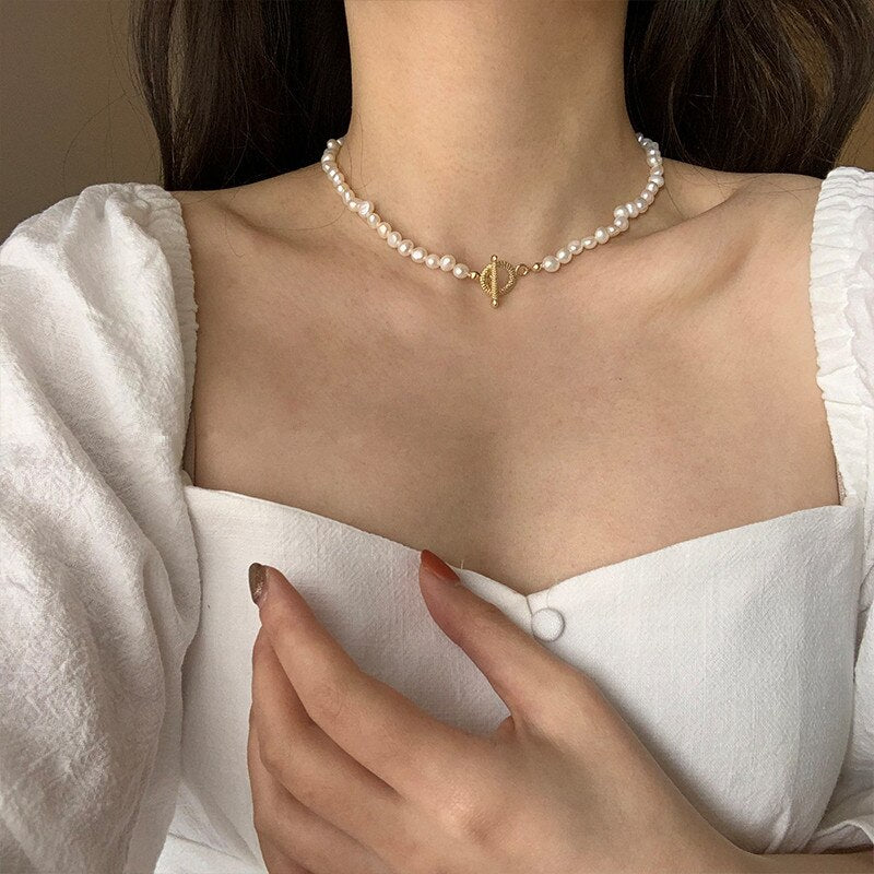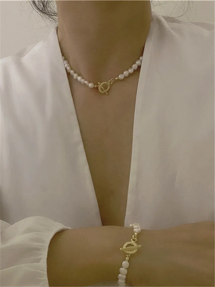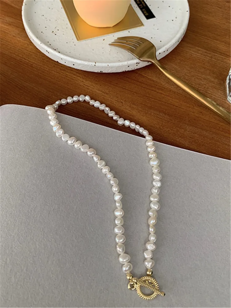 Kshmir French High-grade Baroque Freshwater Pearl Necklace Retro Temperament OT Clasp Necklaces Hand Accessories Women Punk 40cm