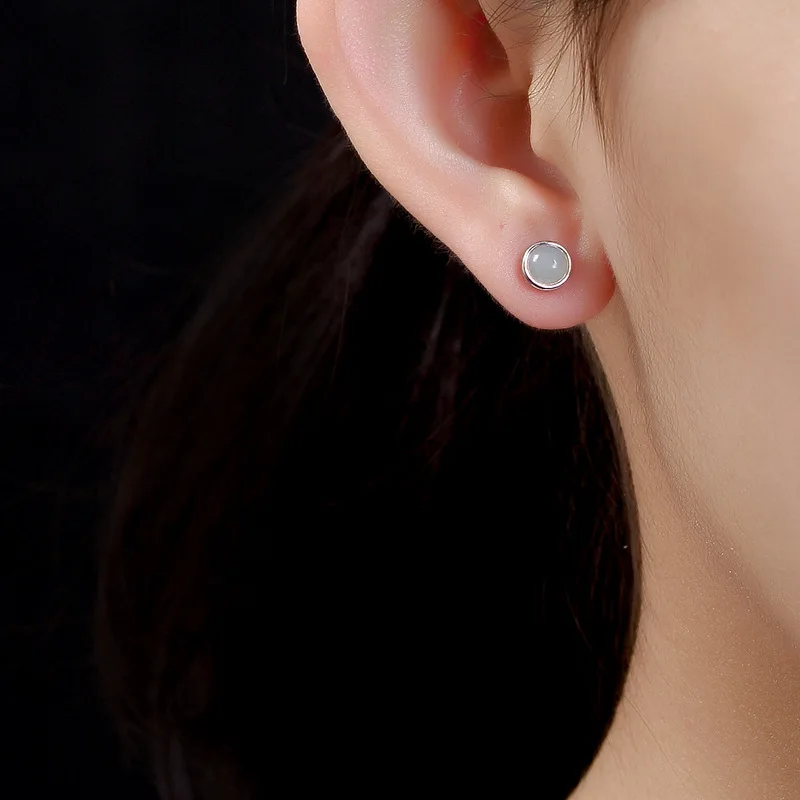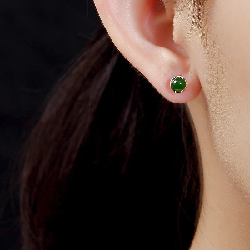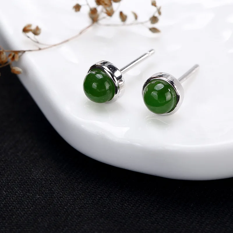 New Nutural Jade 925 Sterling Silver Plum Stud Earrings For Women Two Color Simple Round Earrings Fine Jewelry Wholesale