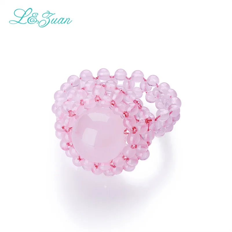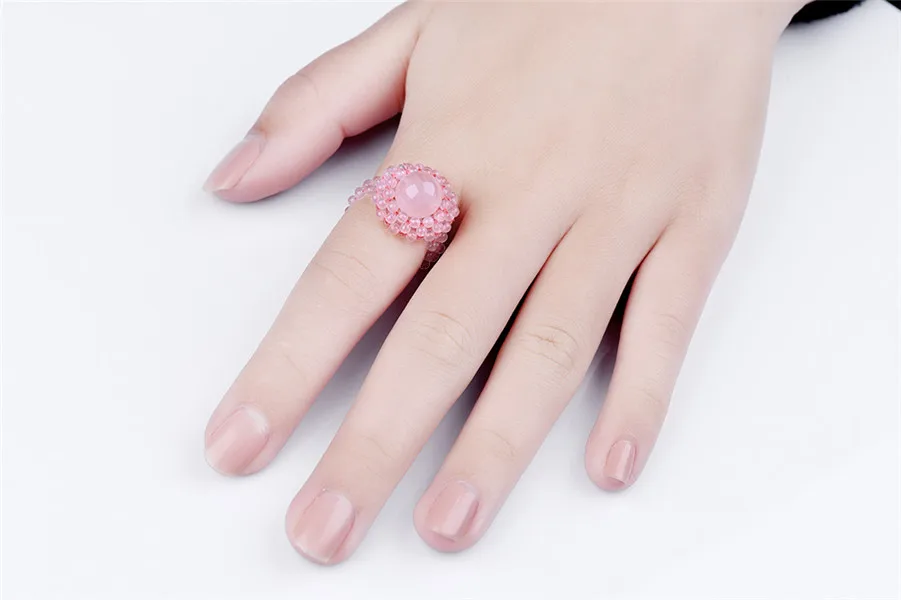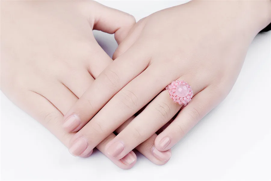 Romantic Pink Princess Ring 100% Handmade Elegant Natural Rose Quartz Crystal Fashion Fine Jewelry Rings for Women 2301