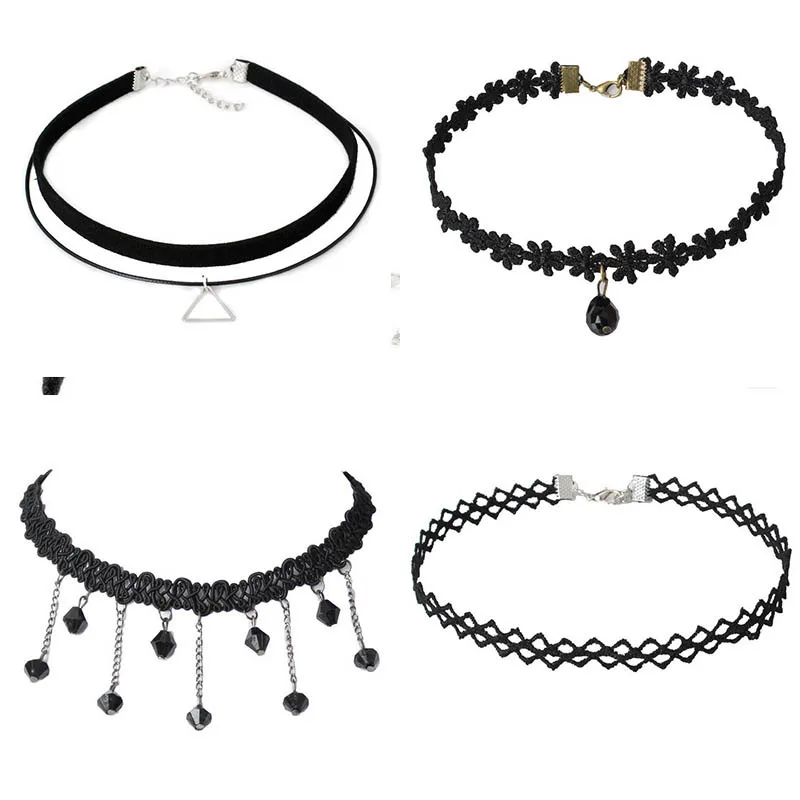 Lace Chokers for Girl Lady Women Bithday Gift Fish Pattern Tassel Flannel Weaving Vintage Necklaces Jewelry
