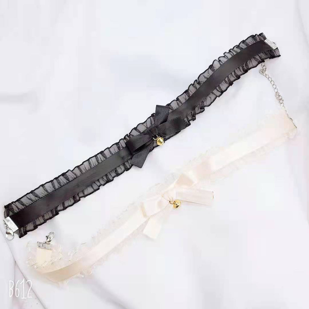 Lace Collar Black Bells Bow Necklace 2021 Black White Clavicle Choker INS Style Short Necklace for Women Jewelry
