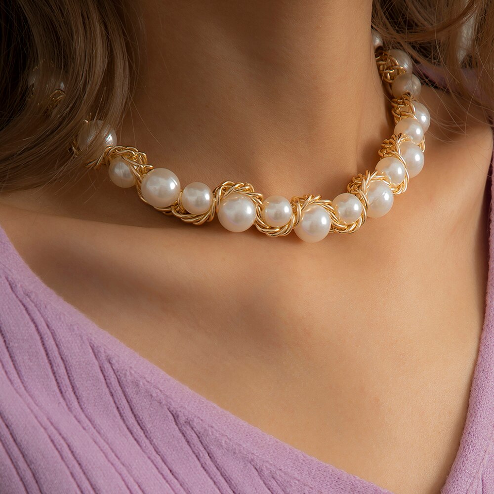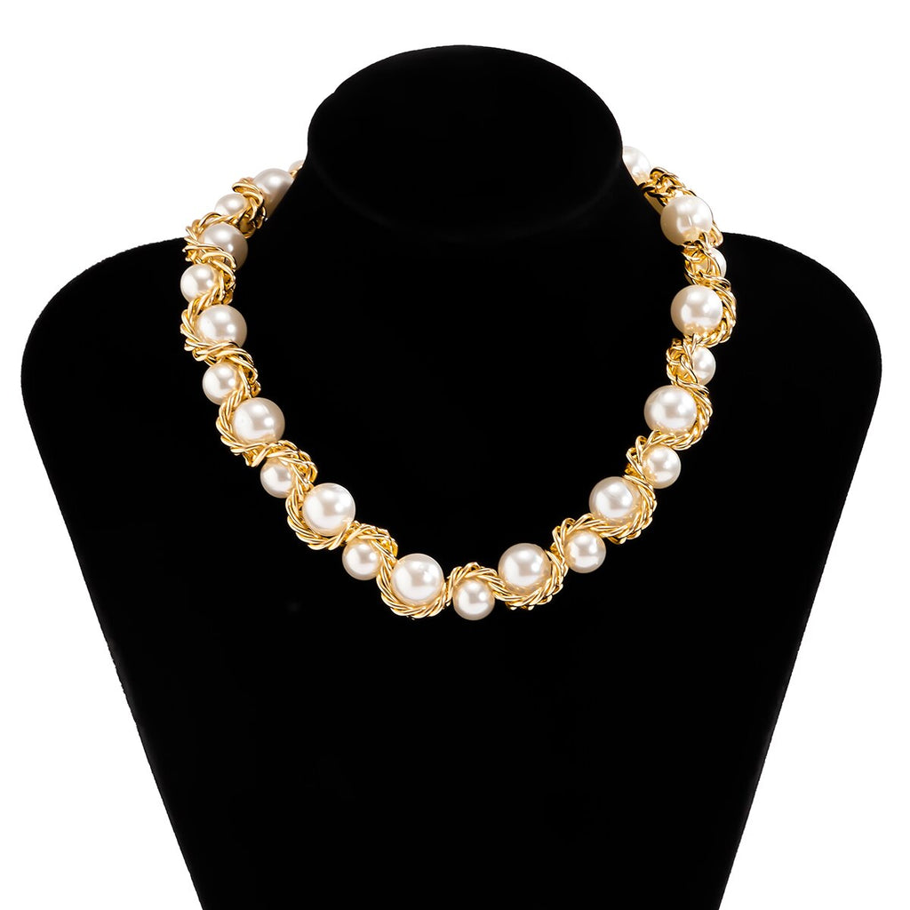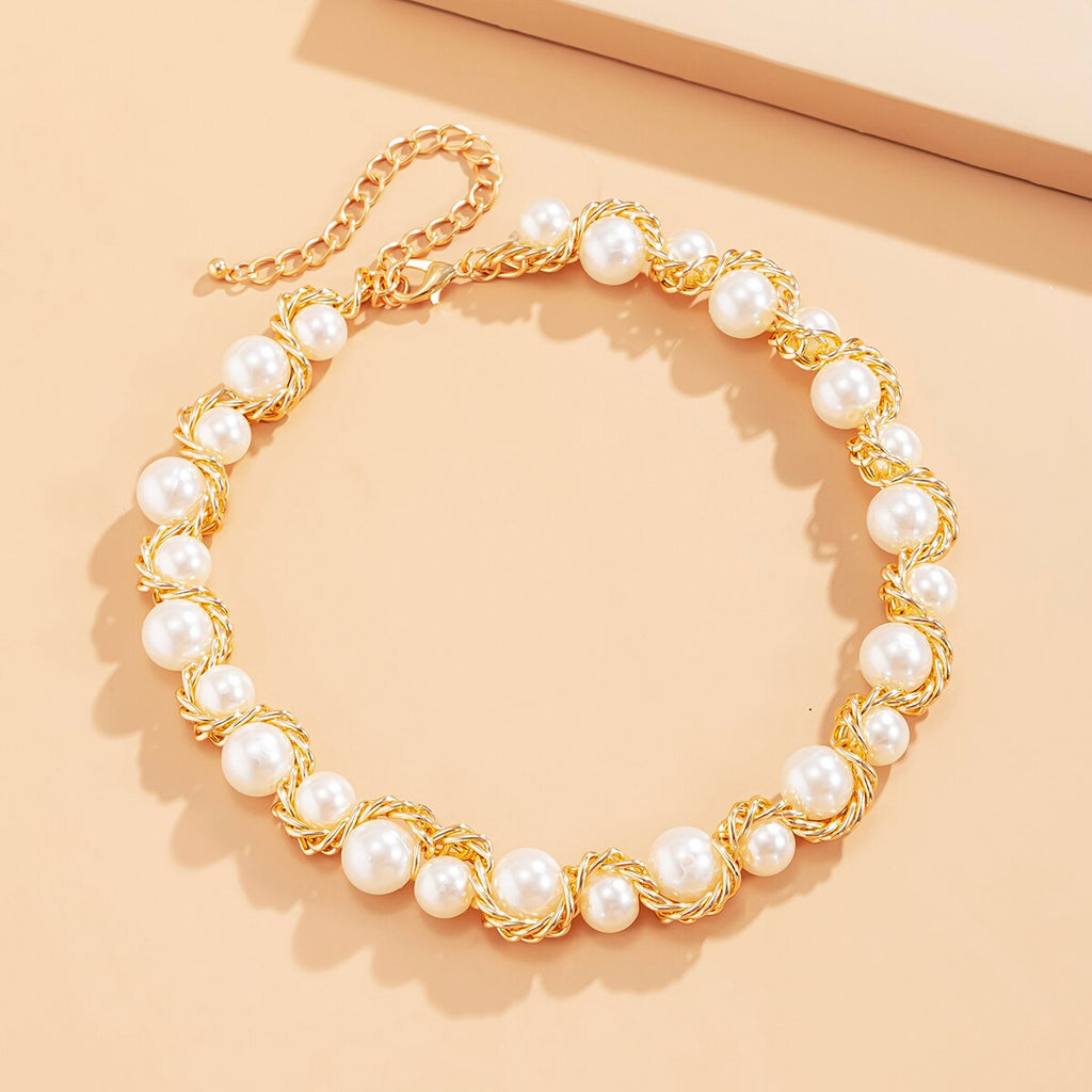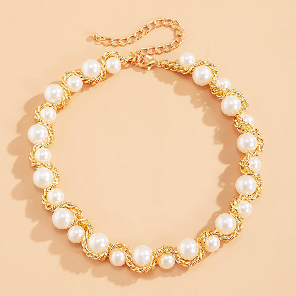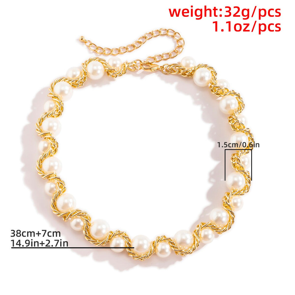 Lacteo Bohemian Imitation Pearls Stitchable Metal Chain Choker Necklace For Women Daily Life Jewelry Accessories
