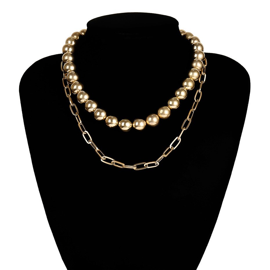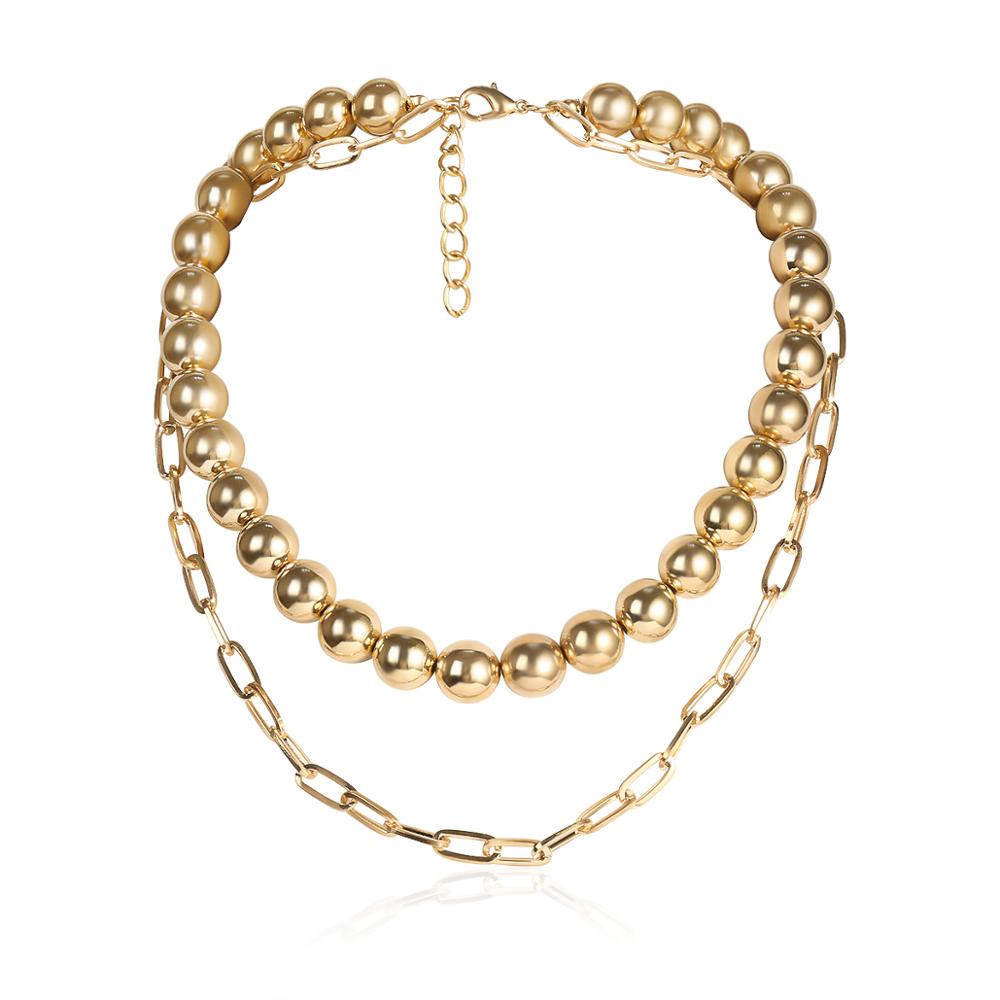 Lacteo Punk Hip Hop Golden Round Beads Chain Choker Necklace Women Exaggerated Multi Layer Chunky Clavicle Chain Charm Necklace