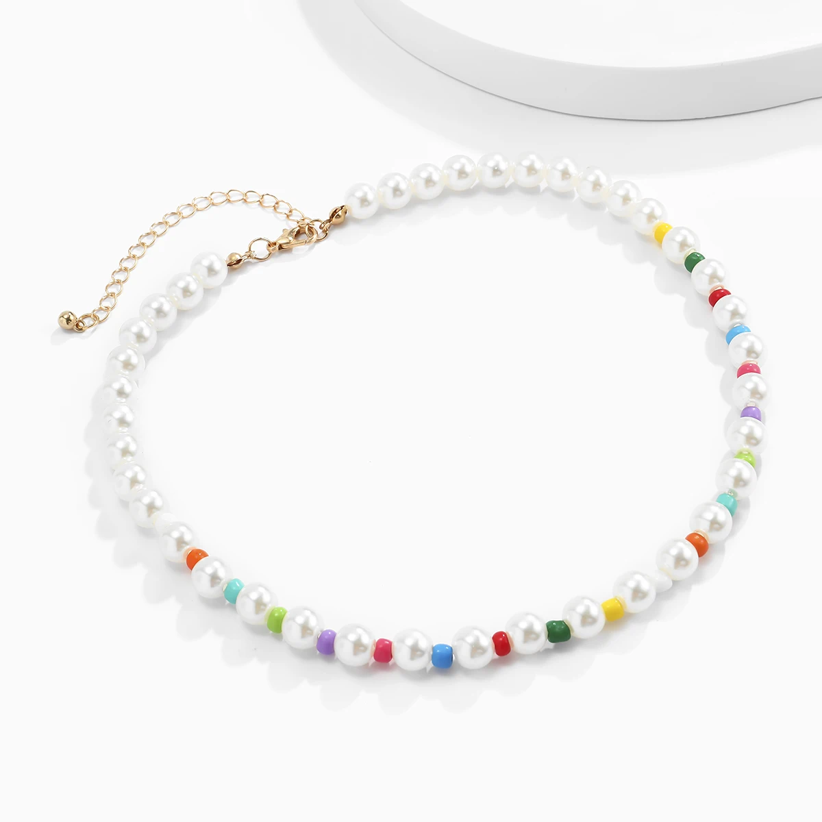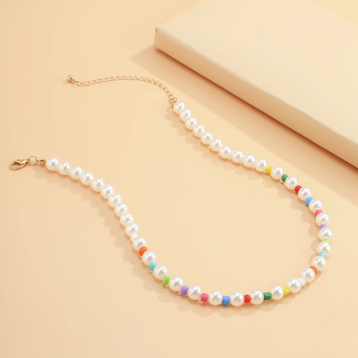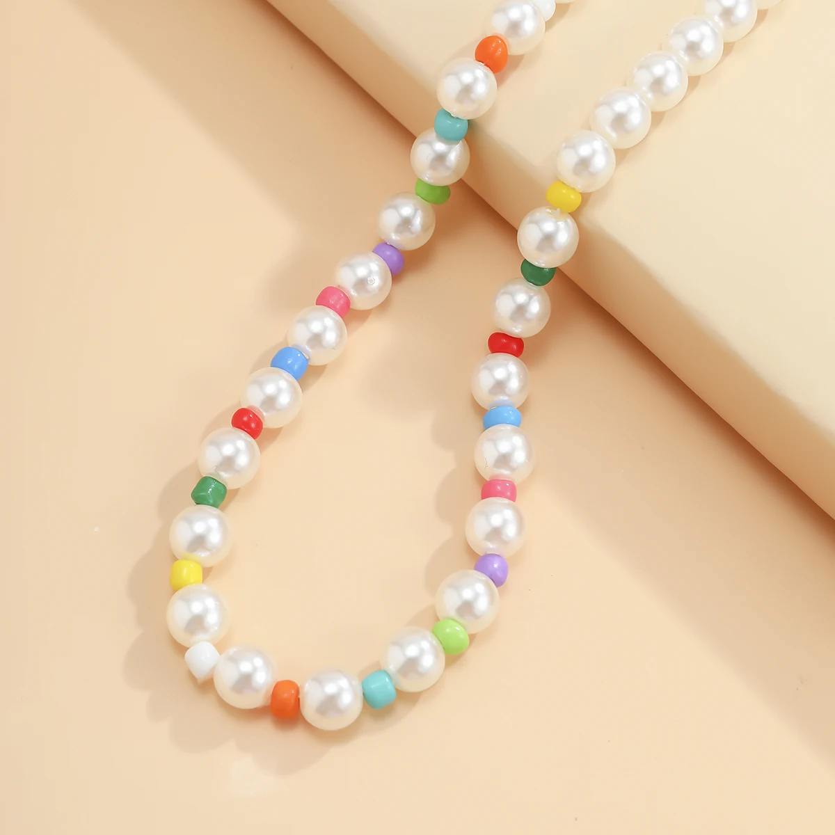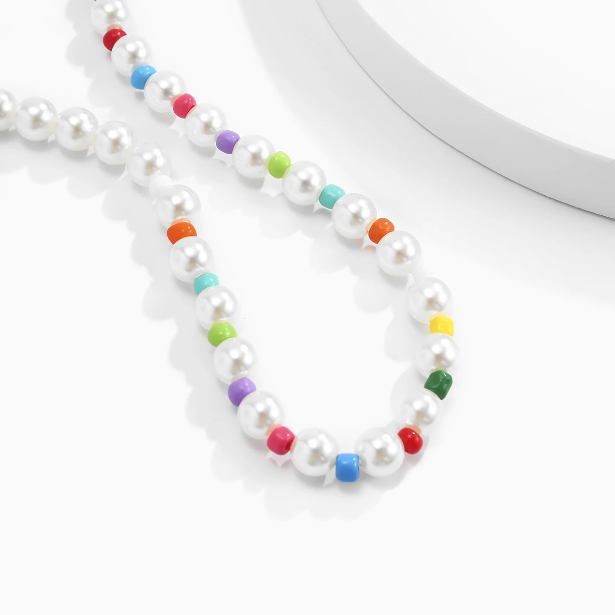 Lacteo Y2K Rainbow Color Acrylic Imitation Pearls Asymmetric Choker Necklace 2022 Trendy Clavicle Chain Necklace