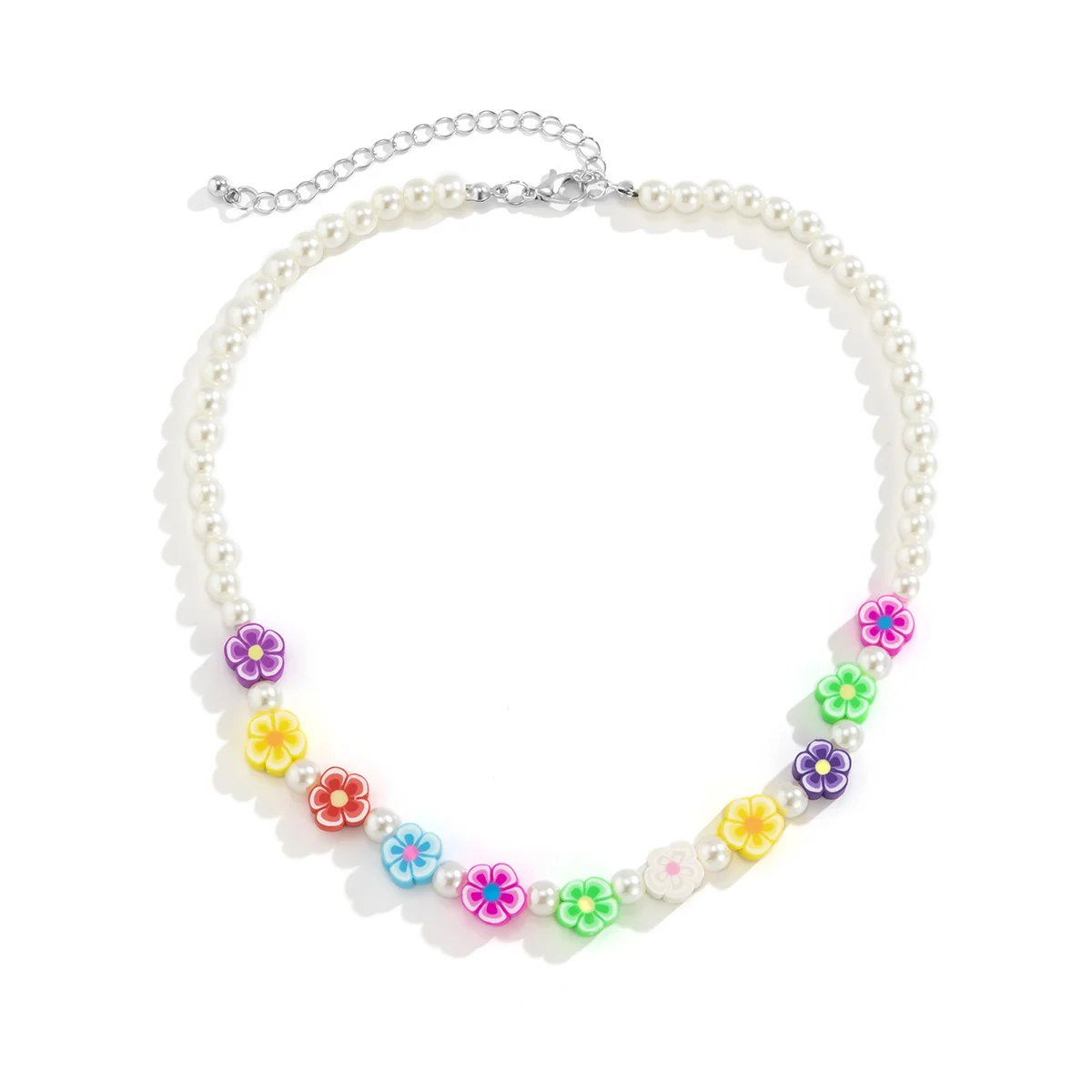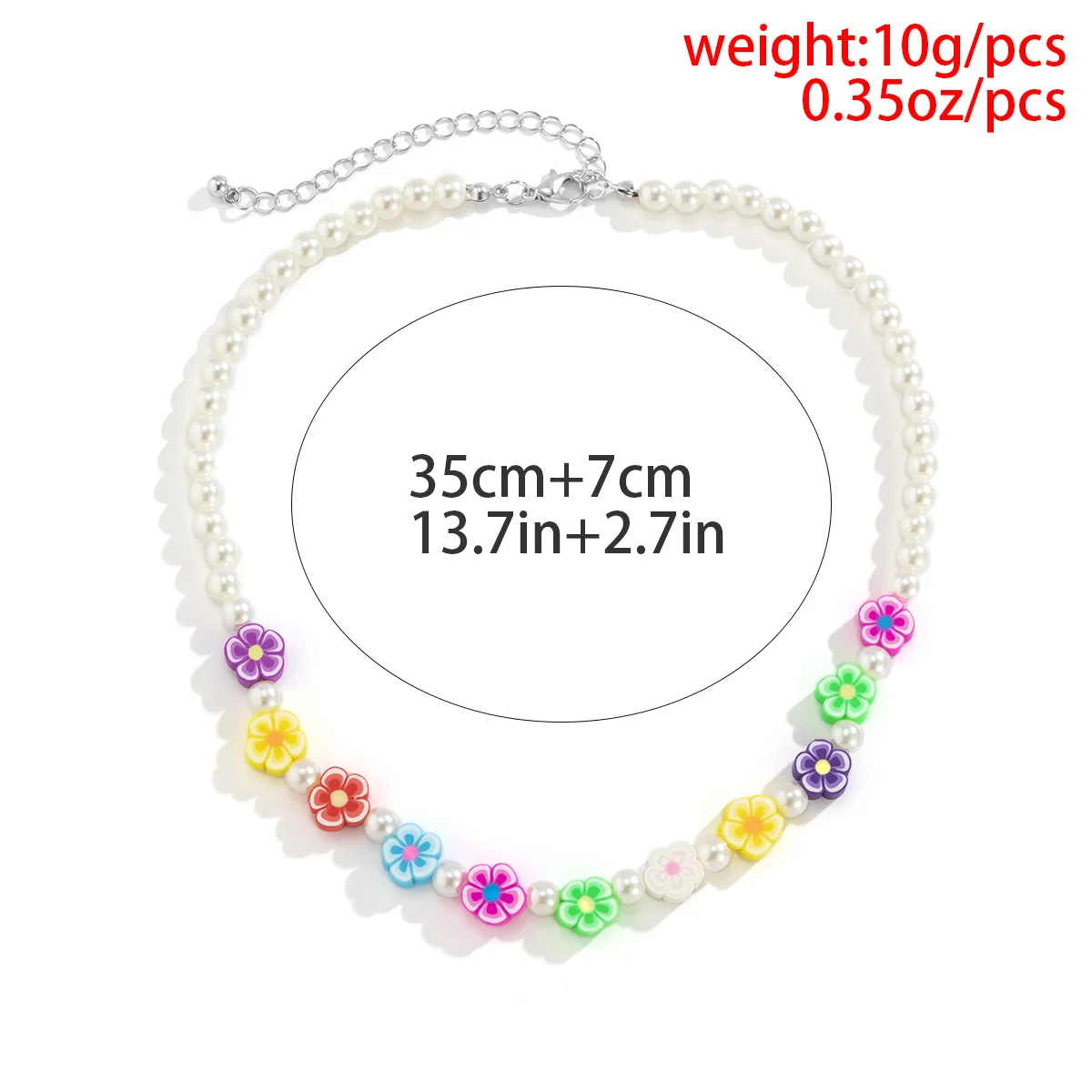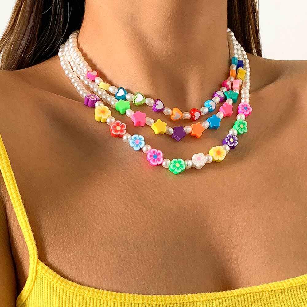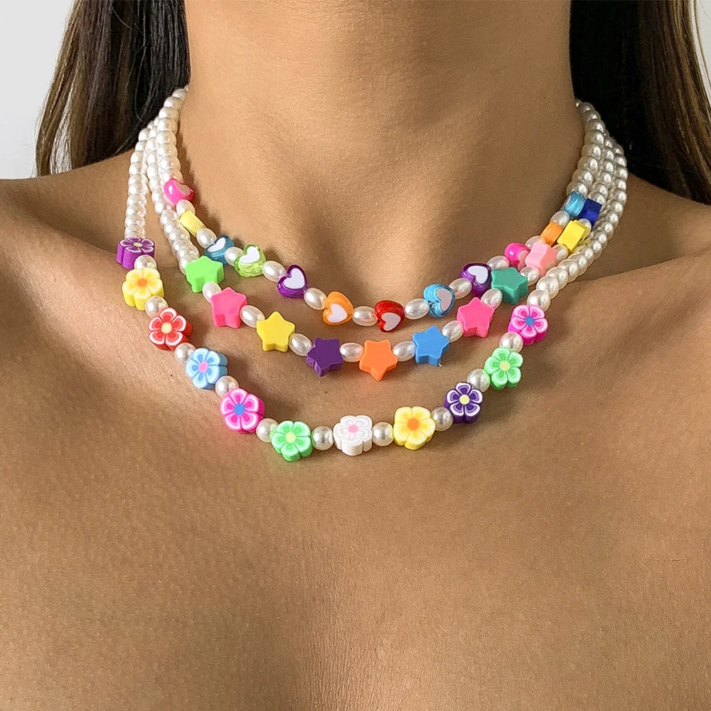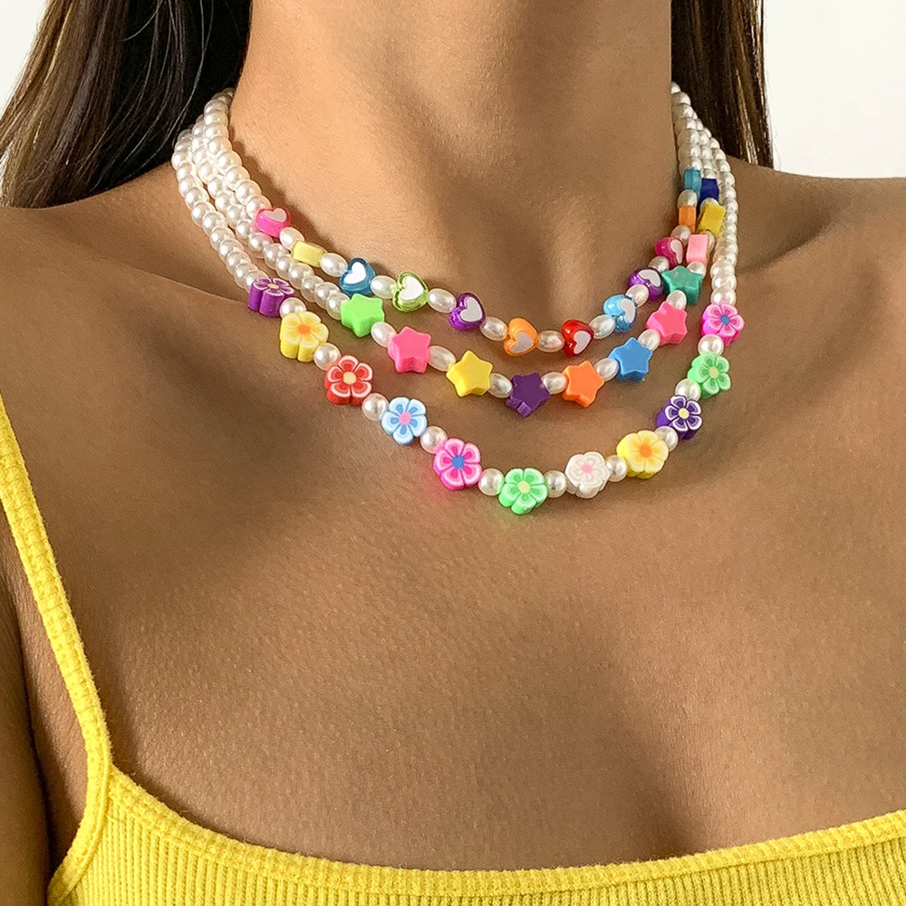 Lacteo Y2K Resin Flower Heart Star Shape Acrylic Choker Necklace Jewelry For Women Bohemian Imitation Pearls Bead Chain Necklace