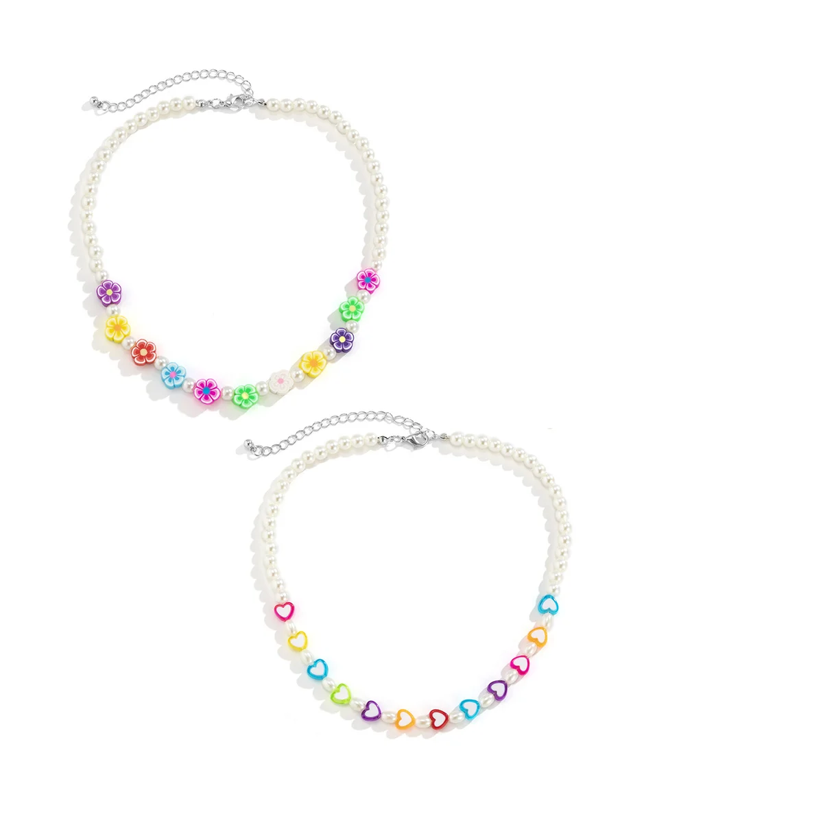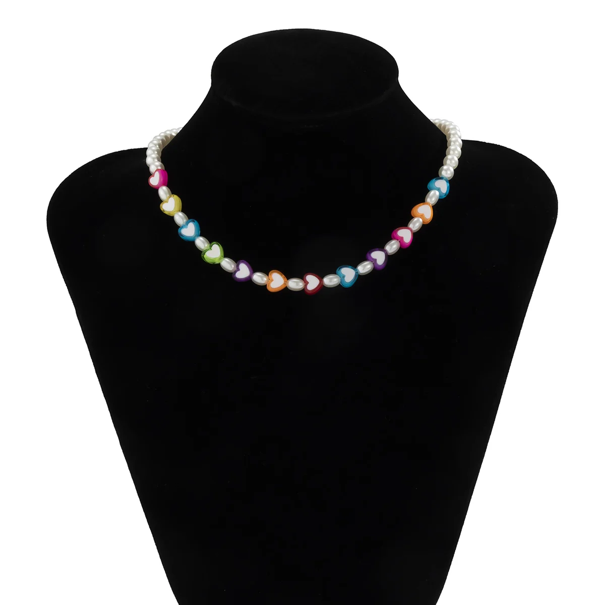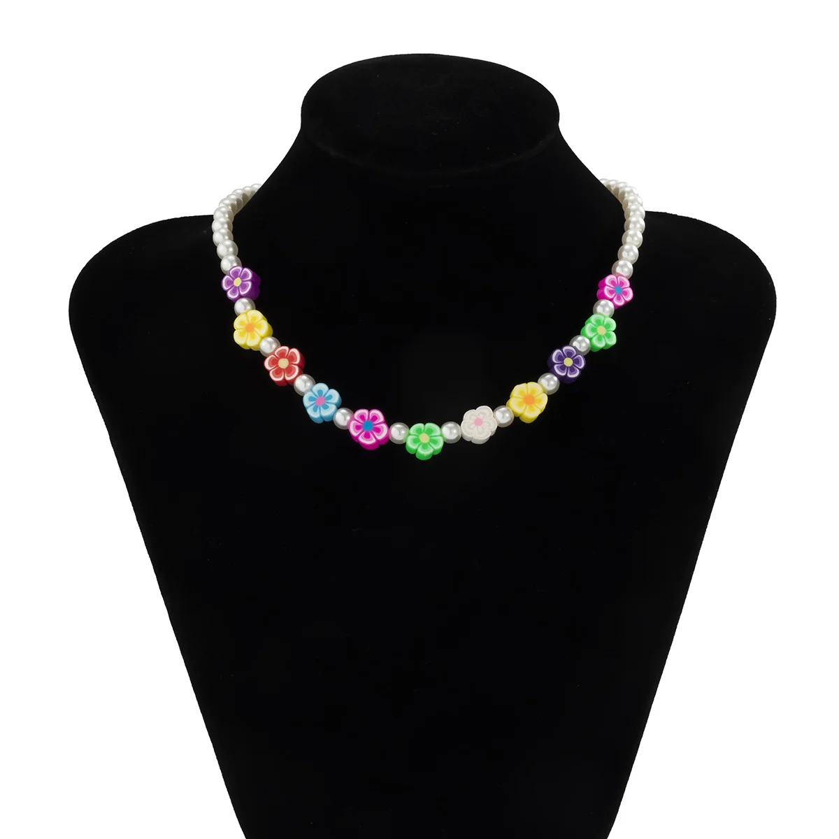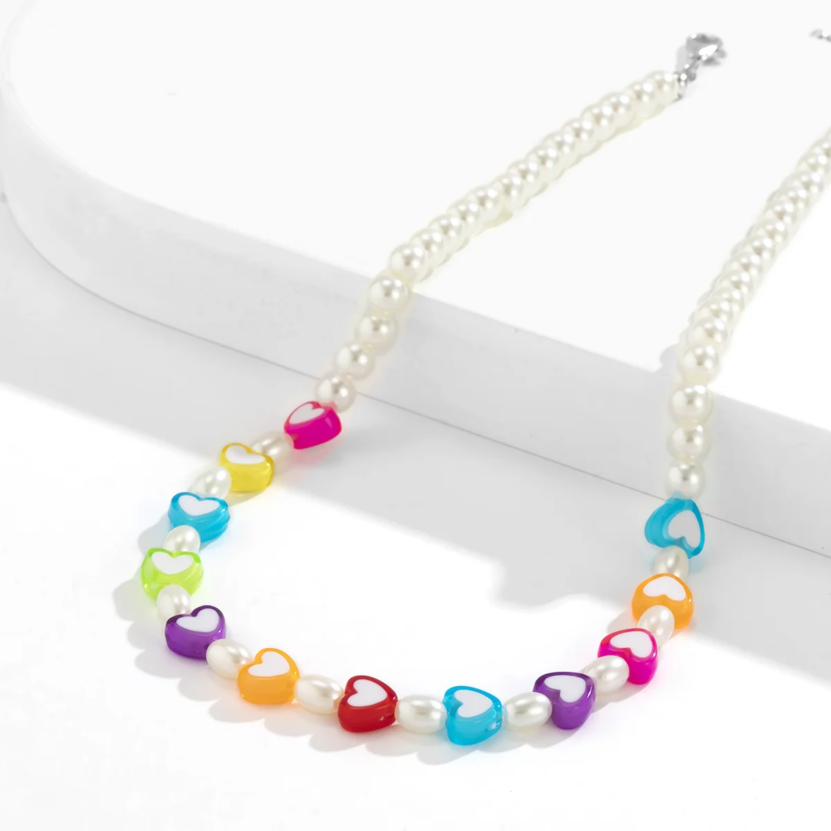 Lacteo Y2K Resin Flower Heart Star Shape Acrylic Choker Necklace Jewelry For Women Bohemian Imitation Pearls Bead Chain Necklace
