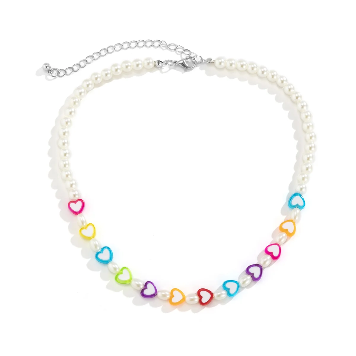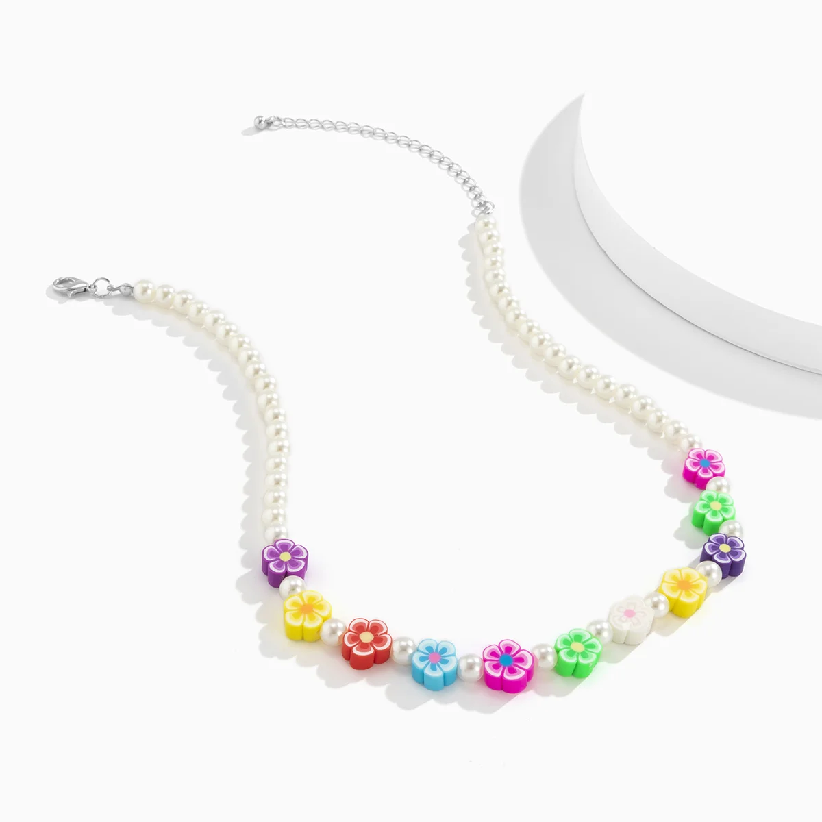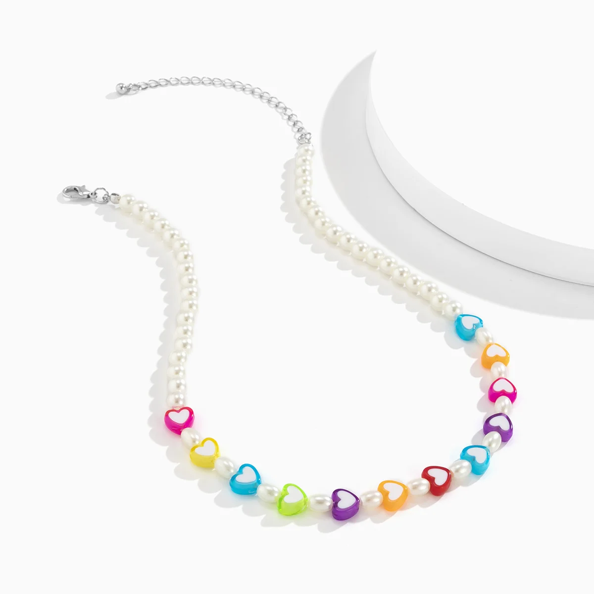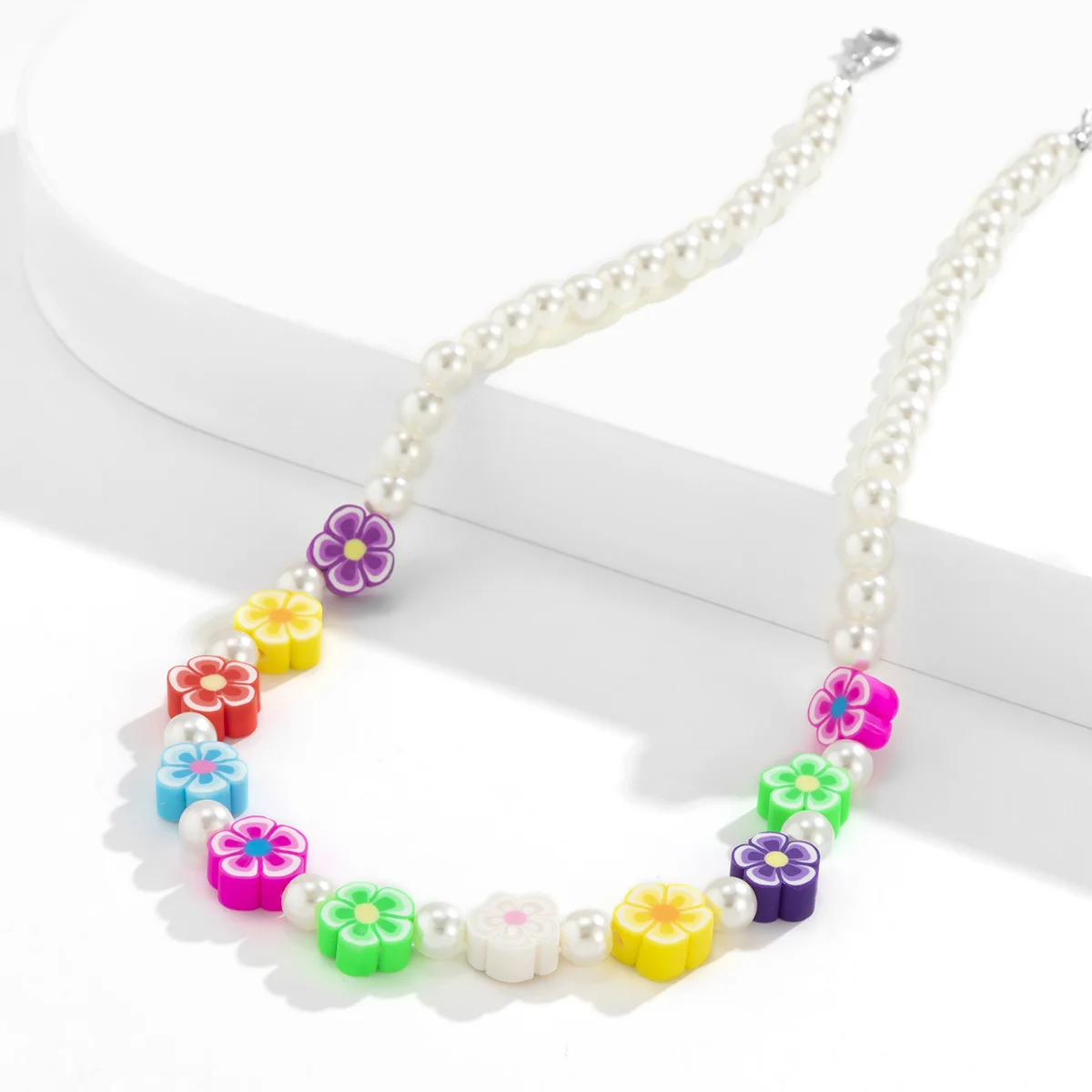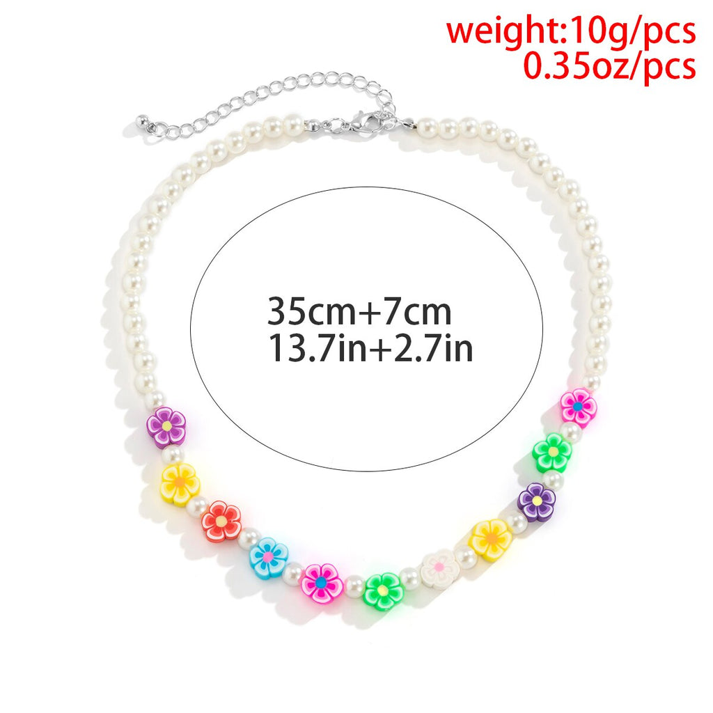 Lacteo Y2K Resin Flower Heart Star Shape Acrylic Choker Necklace Jewelry For Women Bohemian Imitation Pearls Bead Chain Necklace
