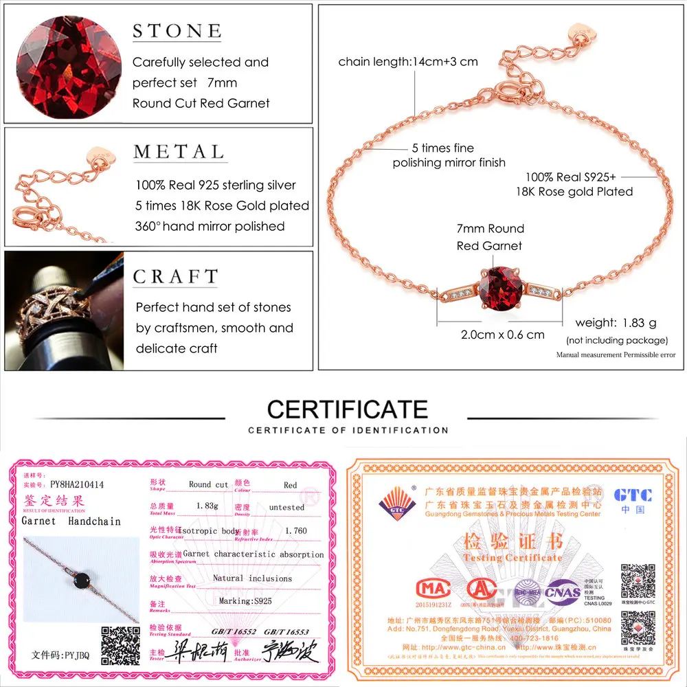 Fashion Rubin Bracelets 925 Sterling Silver Fine Jewelry Natural Gemstone Classic Red 7mm Garnet Chain Charms Bracelet
