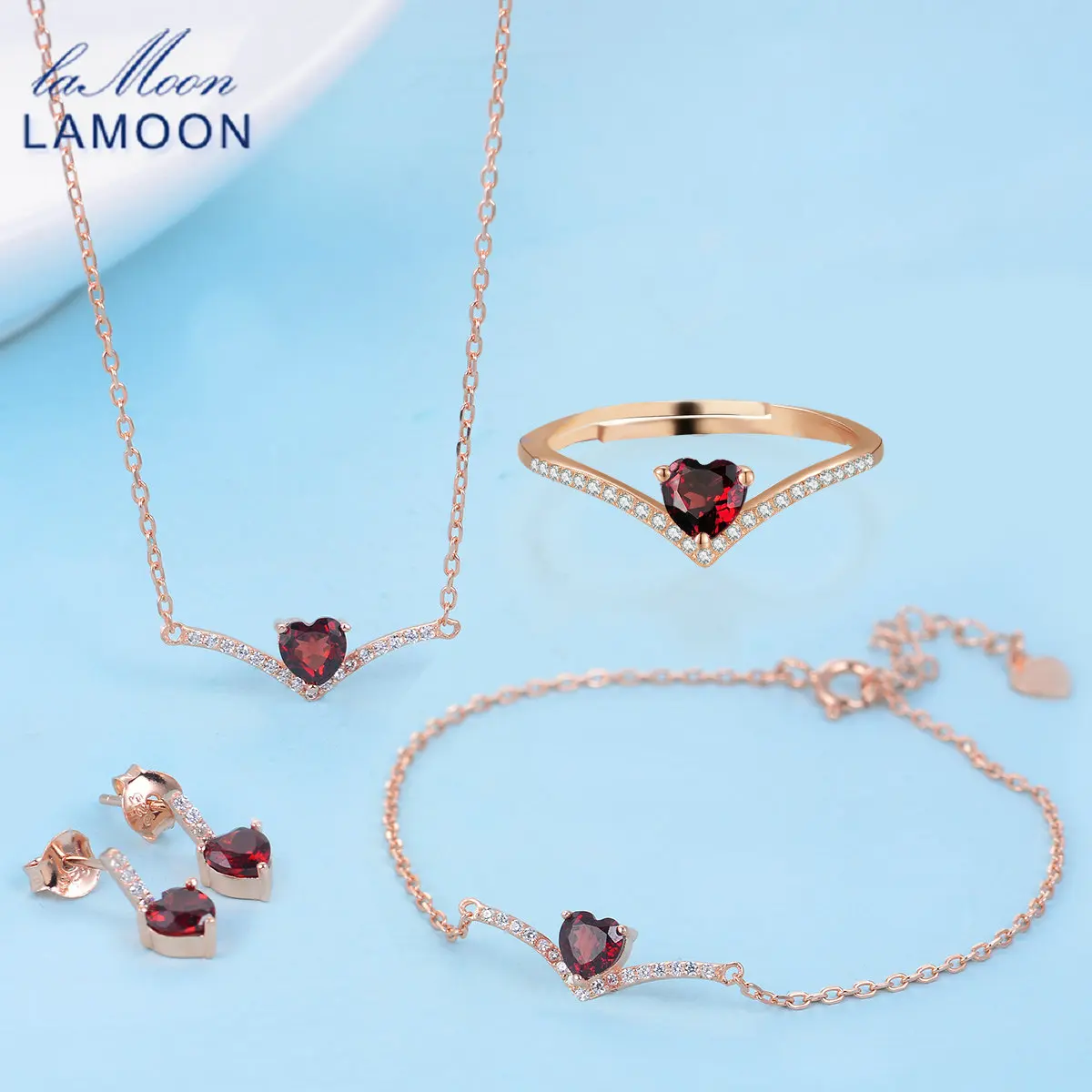 100% Natural Heart cut Red Garnet 925 Sterling Silver Jewelry S925 Jewelry Set V004-1