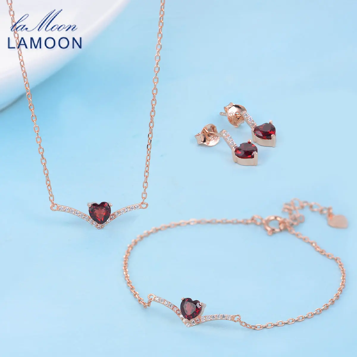 100% Natural Gemstone Heart Cut Red Garnet S925 Sterling Silver Jewelry Set for Women Wedding Party Accessories V004-3