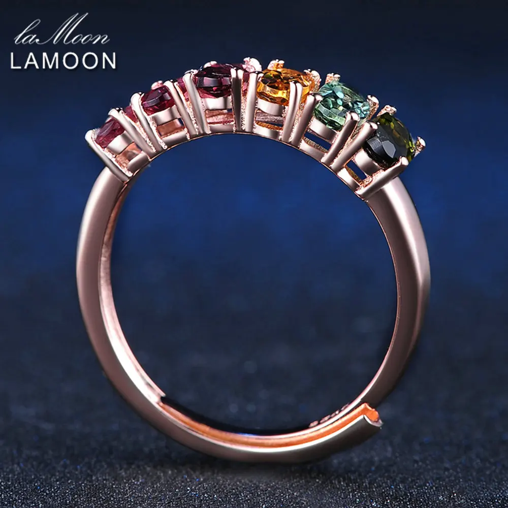 Rings Real Natural 6pcs 1.5ct Oval Multi-color Tourmaline Ring 925 Sterling Silver Fine Jewelry Engagement Anillos Mujer