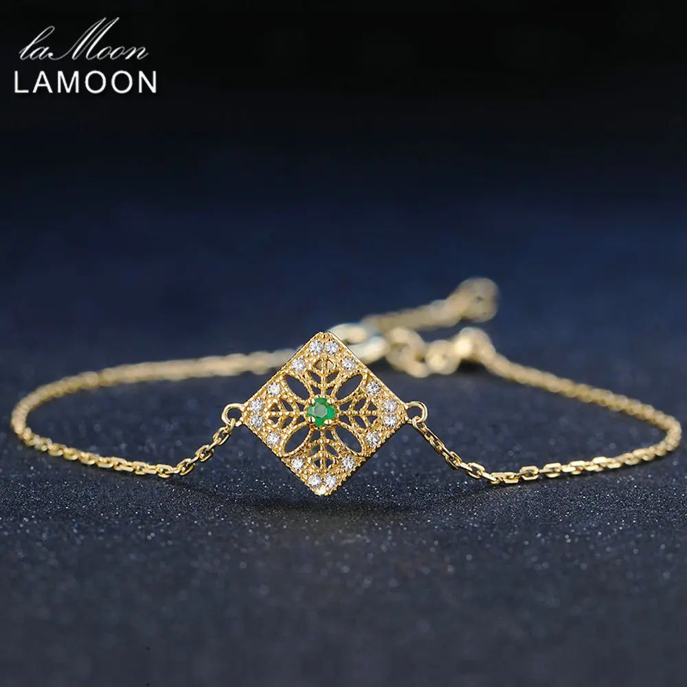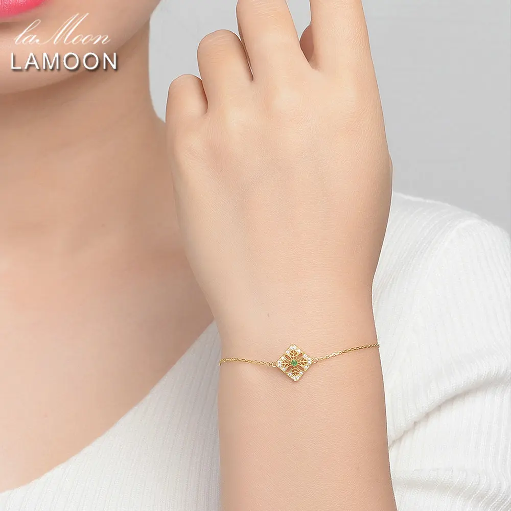 Charms Bracelets 925 Sterling Silver Fine Jewelry Skull Flowers 2mm 0.06ct Natural Emerald Women Yellow Chain ChALkeR New