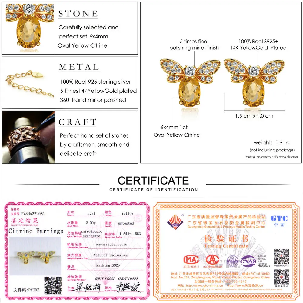 Bee 5x7mm 1ct 100% Natural Citrine 925 sterling-silver-jewelry Jewelry Set V027-5