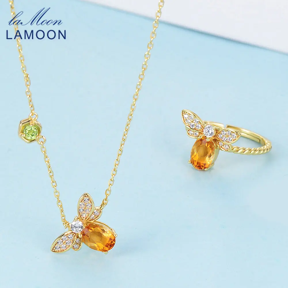 Bee 5x7mm 1ct 100% Natural Citrine 925 Sterling Silver Jewelry S925 Jewelry Set V027-2