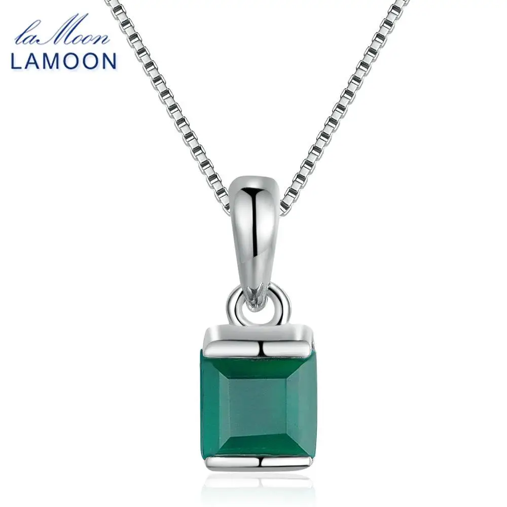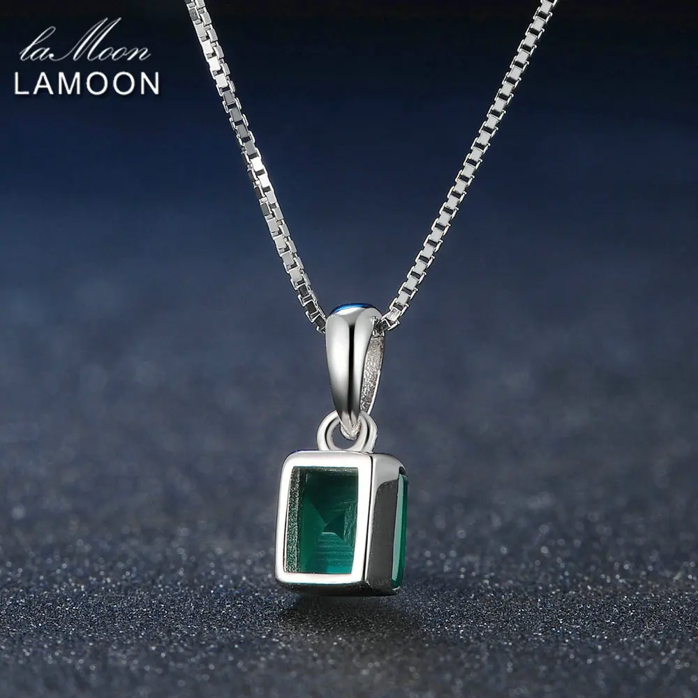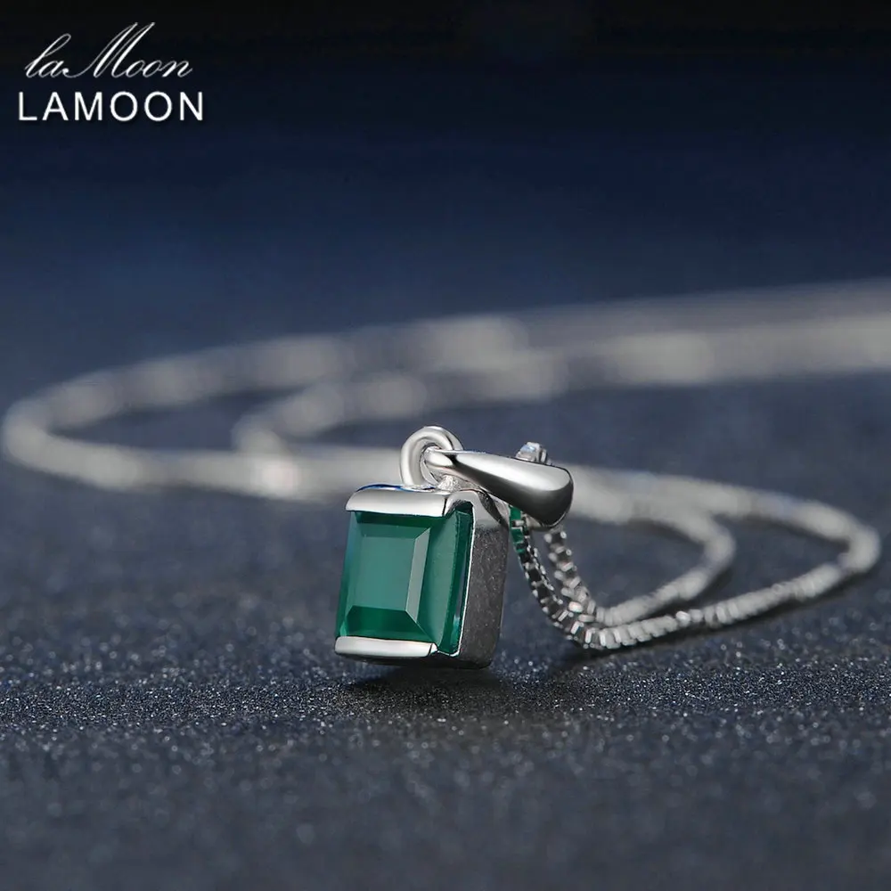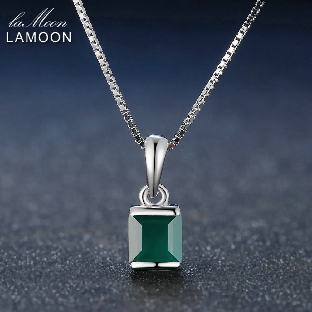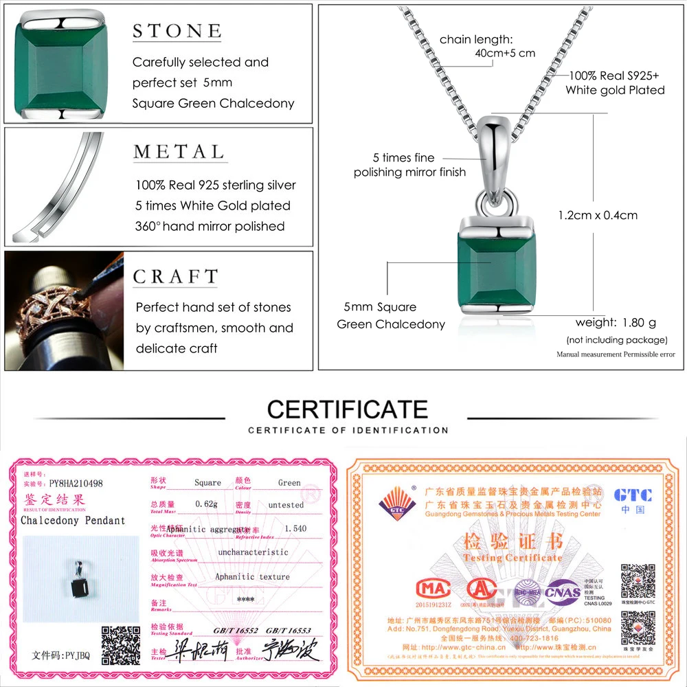 Natural Square Green Chalcedony 925 Sterling Silver Simple Chain Pendant Necklace Women Jewelry S925 LMNI038