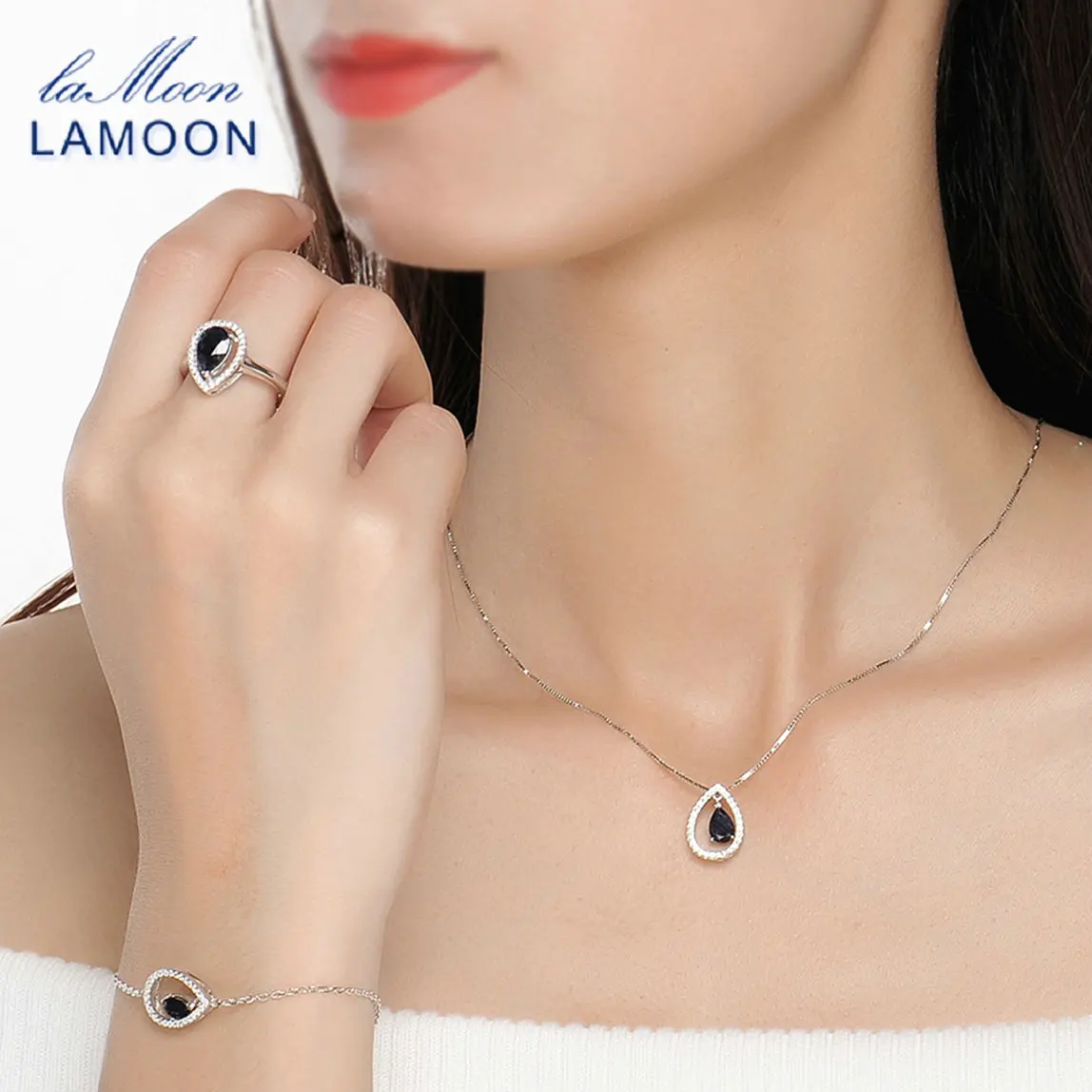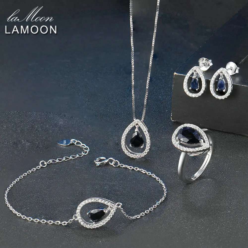 X5mm Teardrop 100% Real Blue Sapphire 925 sterling-silver-jewelry Crown Jewelry Set S925 For Women V040-1