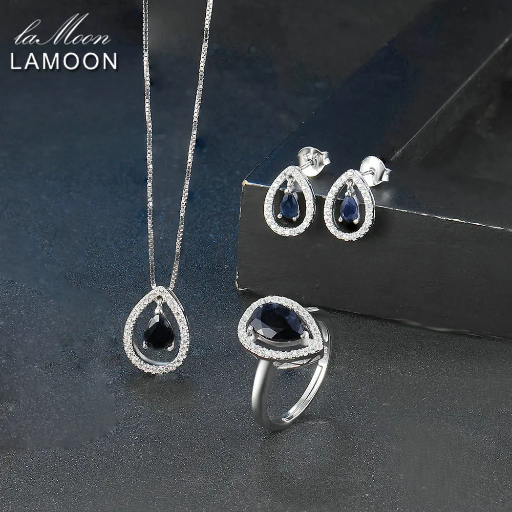 X5mm Teardrop 100% Real Blue Sapphire 925 sterling-silver-jewelry Crown Jewelry Set S925 For Women V040-2