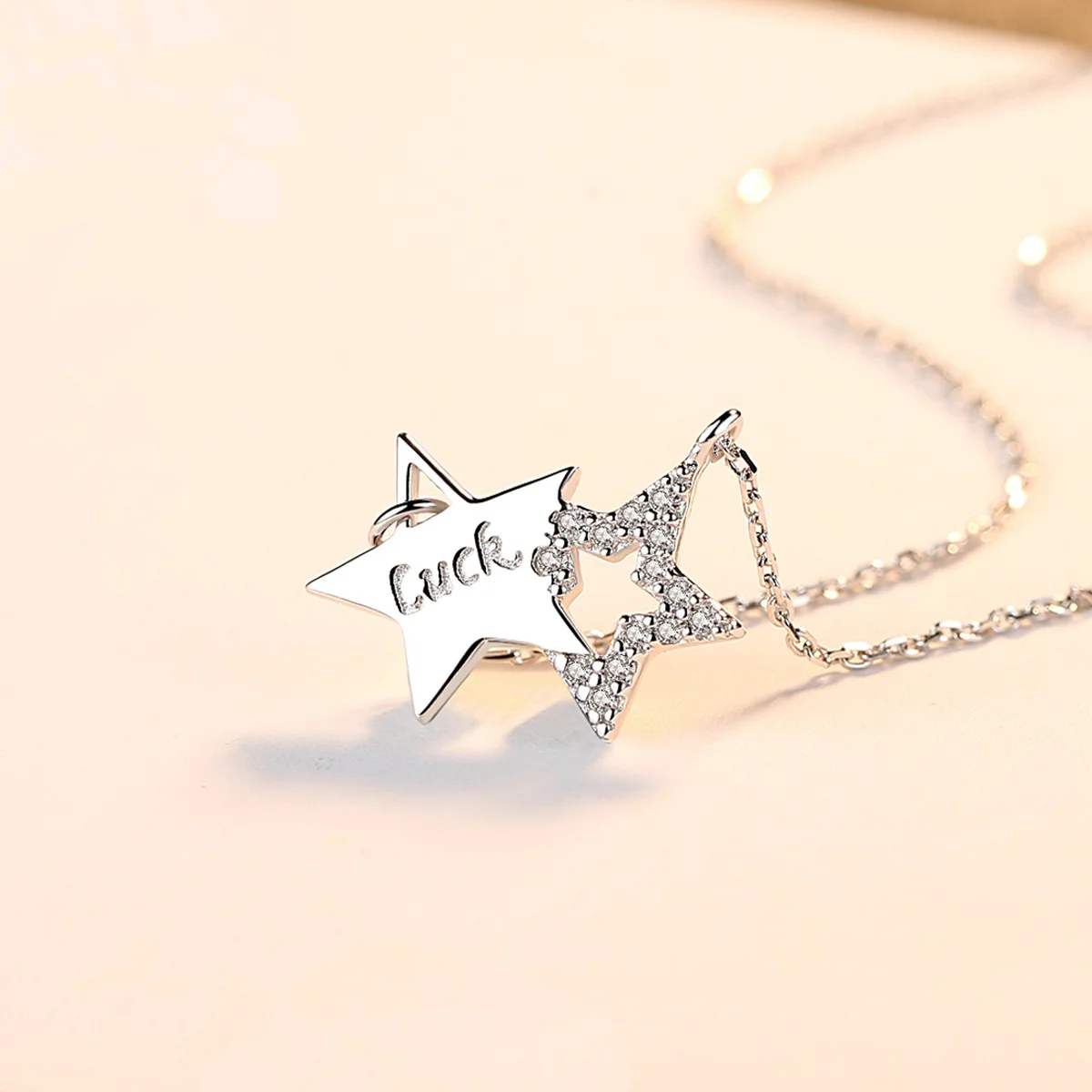 Authentic 925 Sterling Silver Star Pendant Necklace for Women Fine Jewelry Clear Zircon Star 2020 Newest Arrival Jewelry