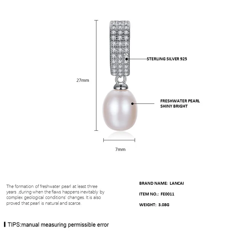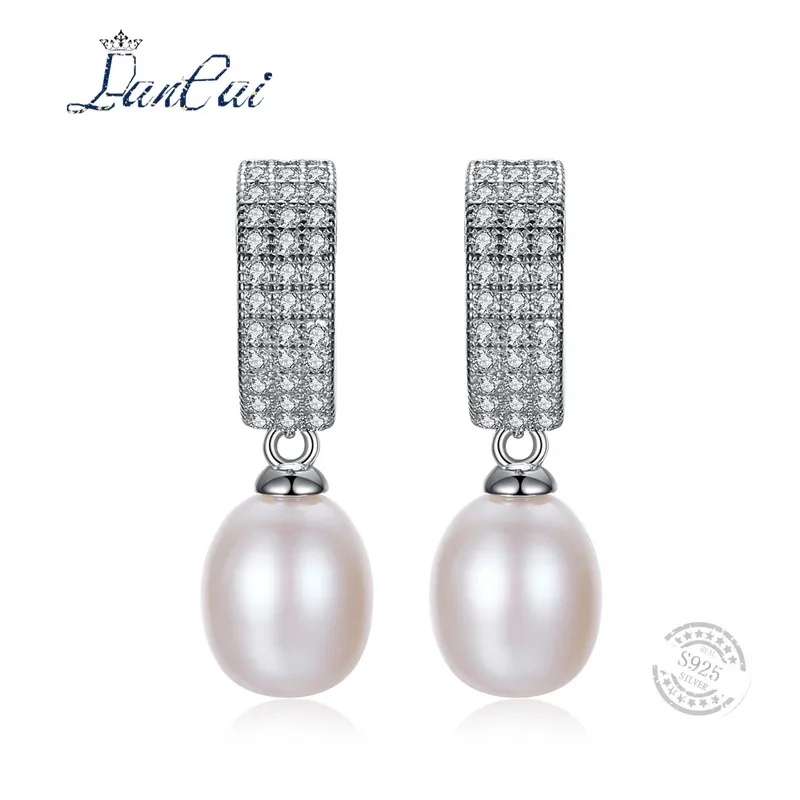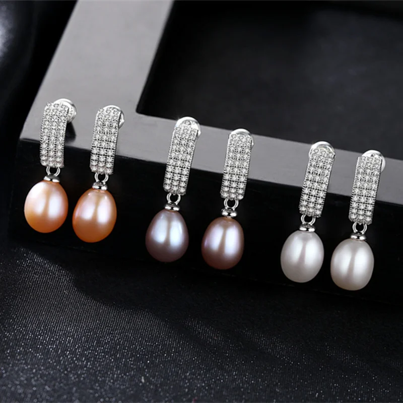 Brand Pure Natural Pearl Earrings 8-9mm Pearls 925 Sterling Silver Women Fine Earring Jewelry Classic Style
