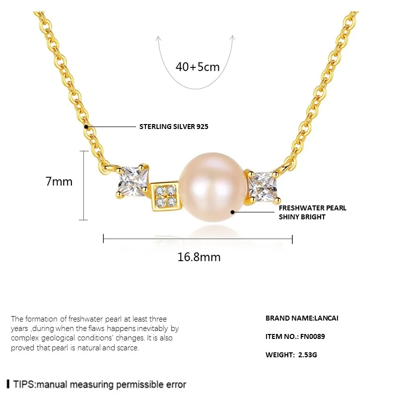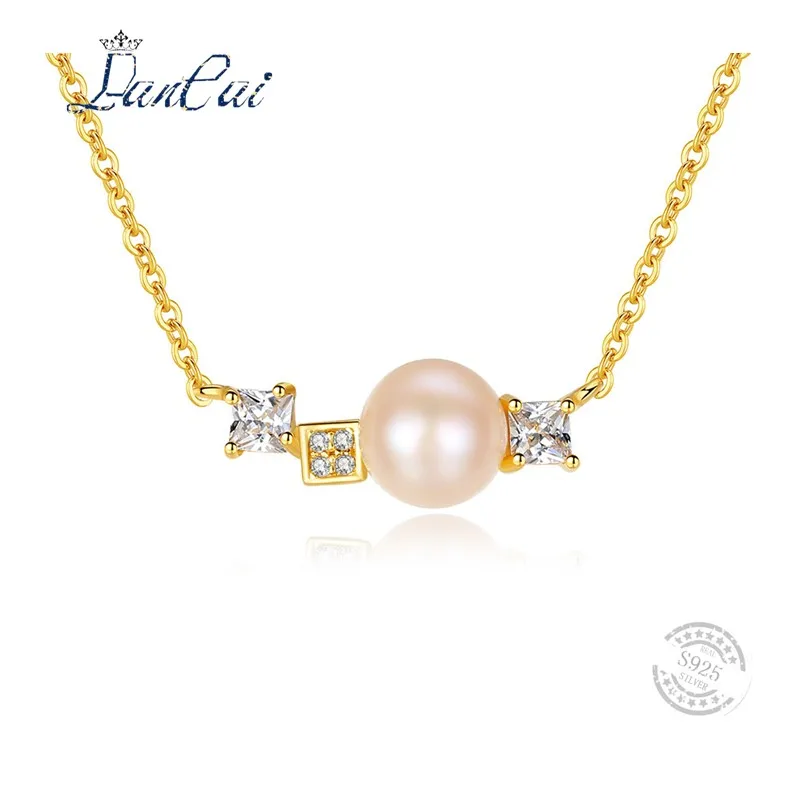 Fashion 925 Sterling Silver Necklace 7-7.5mm Geometric Natural Pearl Pendant Necklace for Women Fine Jewelry