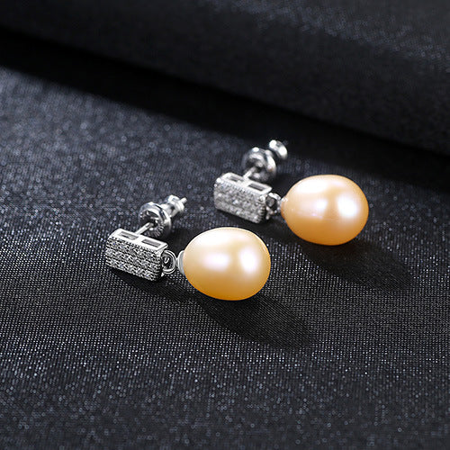Fashion 925 Sterling Silver Pearl Earrings Geometric Natural Pearl Stud Earrings for Women Fine Jewelry Gift