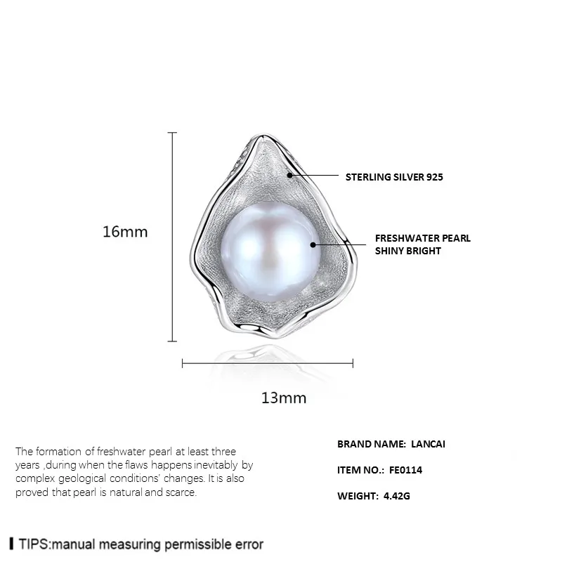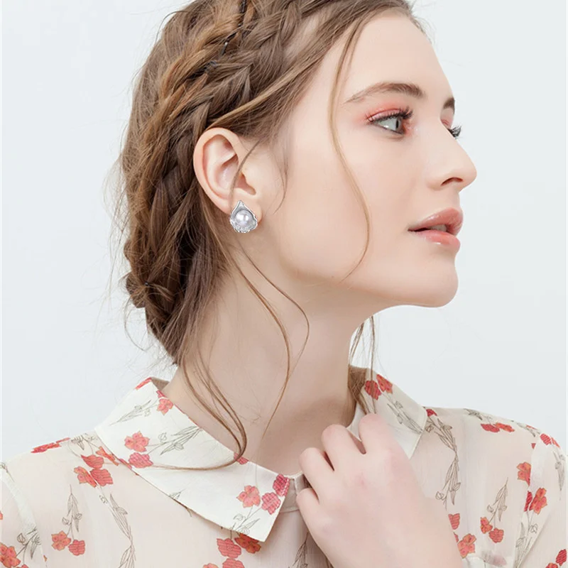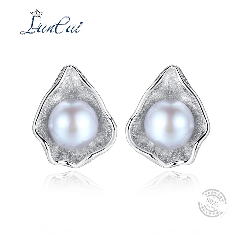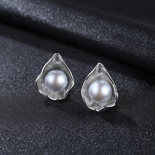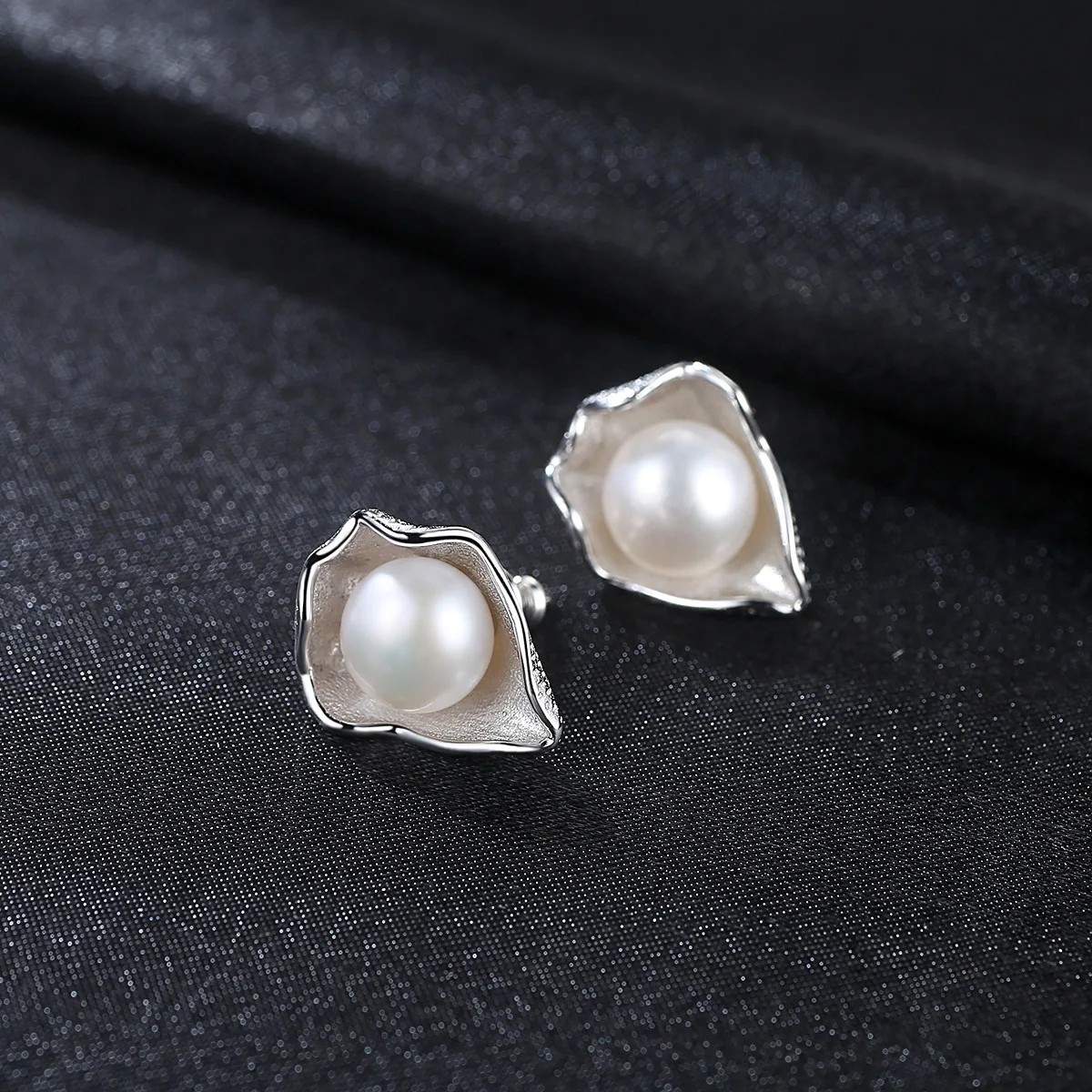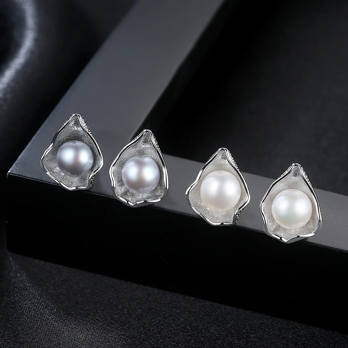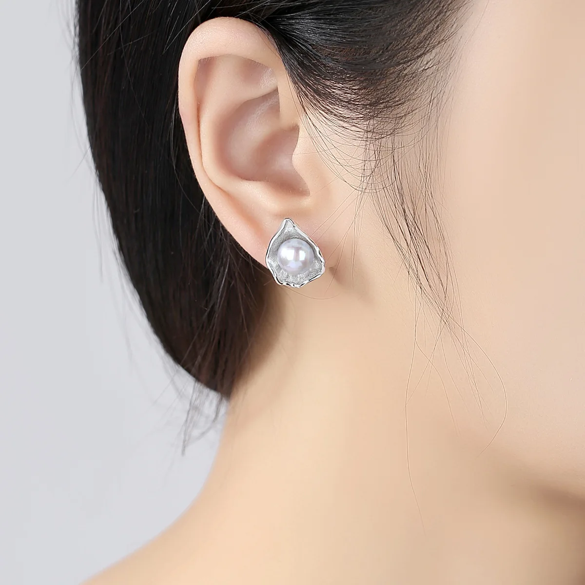 Fashion 925 Sterling Silver Pearl Earrings Shell-like Natural Pearl Stud Earrings for Women Fine Jewelry Gift