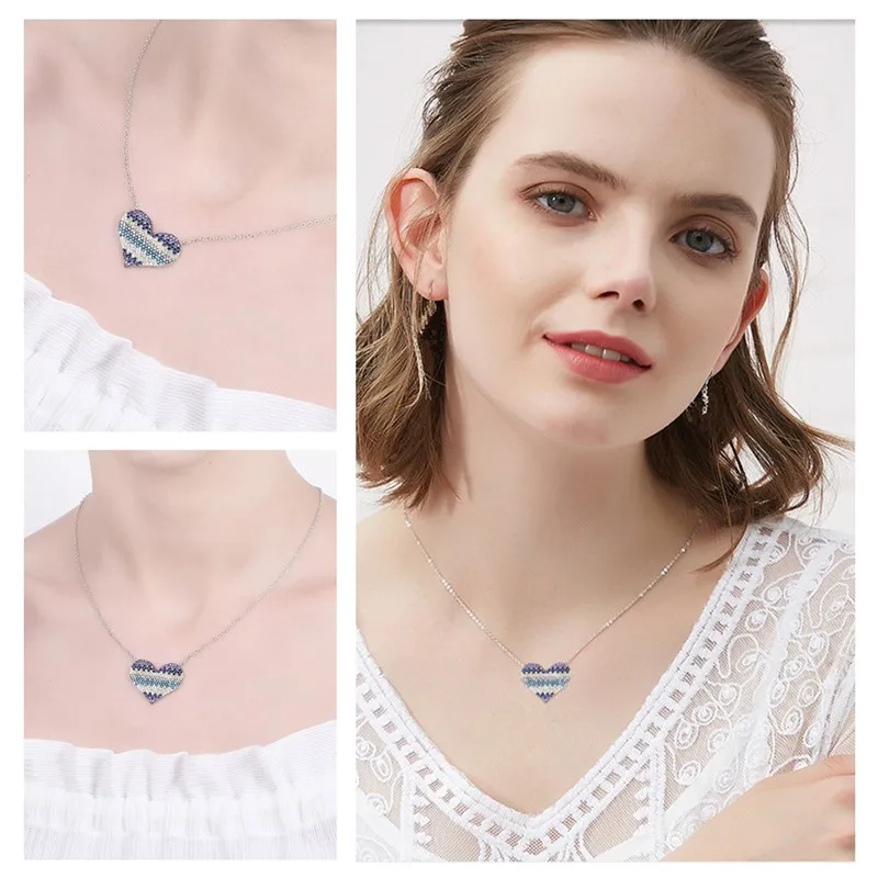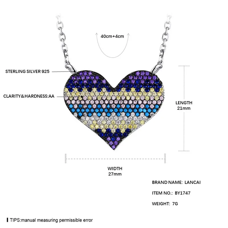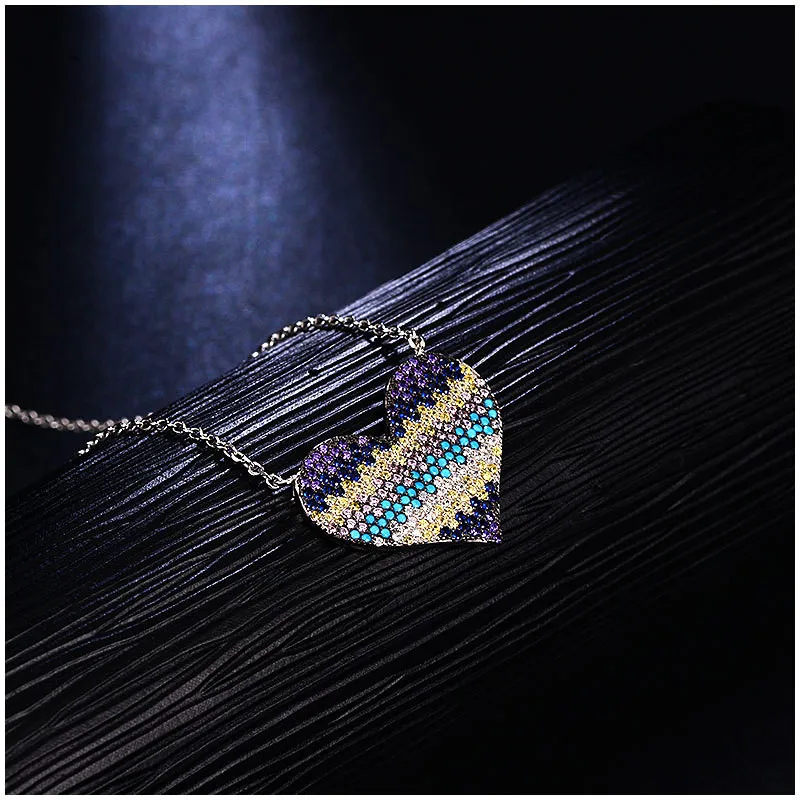 Fashion Manual 925 Sterling Silver Necklace Heart-shaped Colorful Zircon Pendant Necklace for Women Fine Jewelry Gift