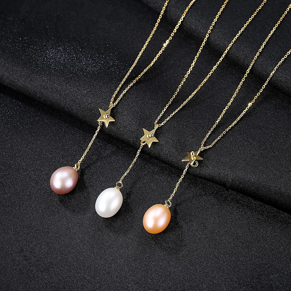 Genuine Fashion 925 Sterling Silver Necklace Natural Pentagram Pendant Necklace for Women Fine Jewelry Gift