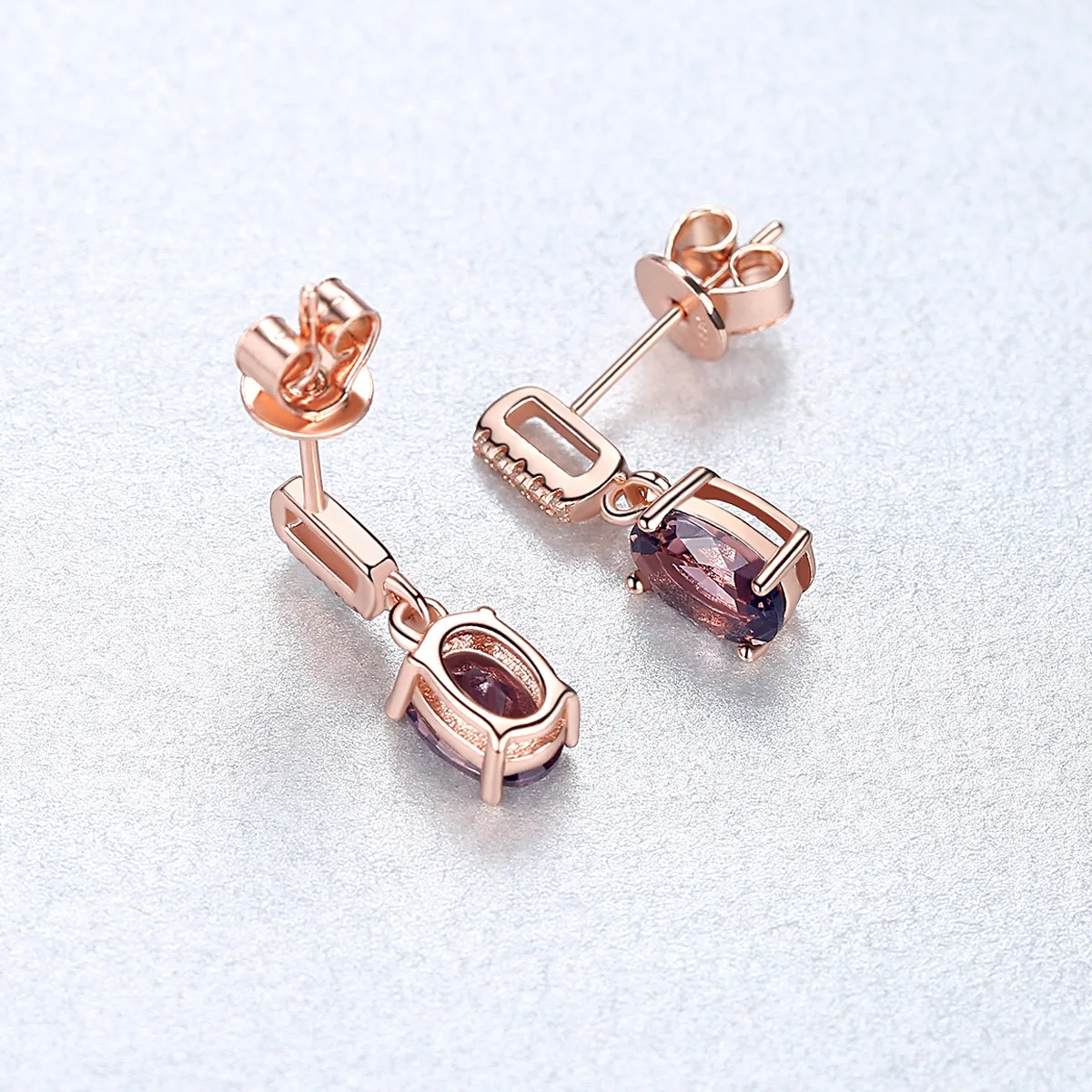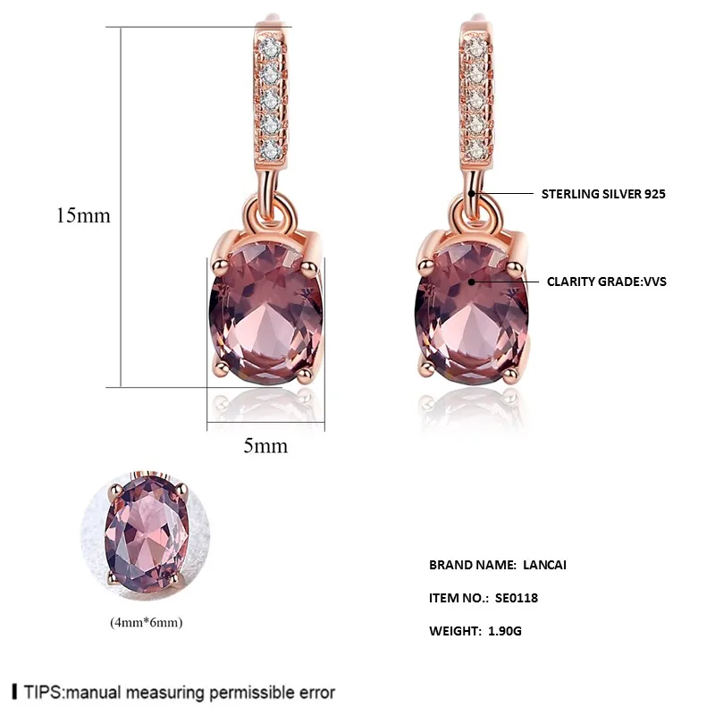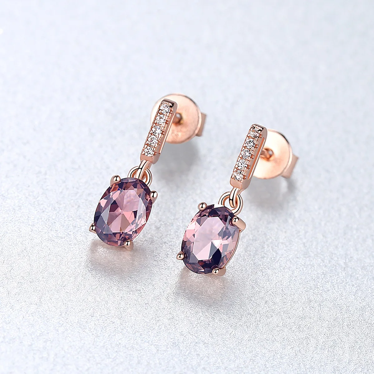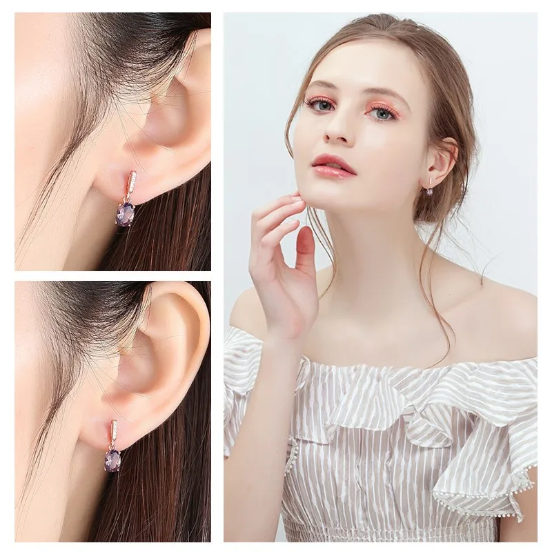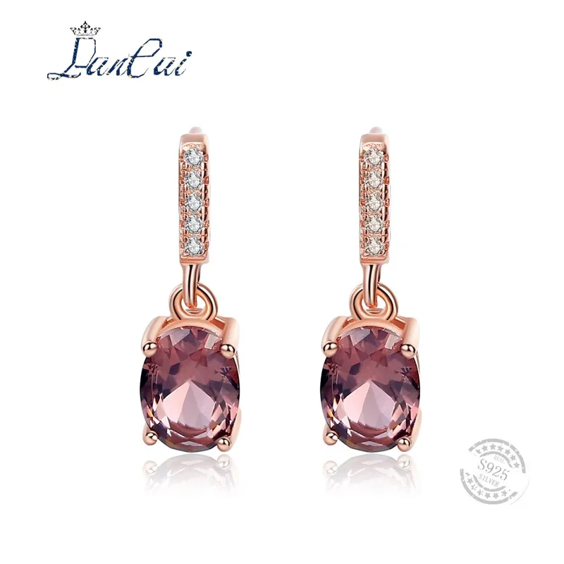 Luxury 925 Sterling Silver Earrings Morganite 18K Rose Gold Plated Stud Earrings for Women High Quality Fine Jewelry