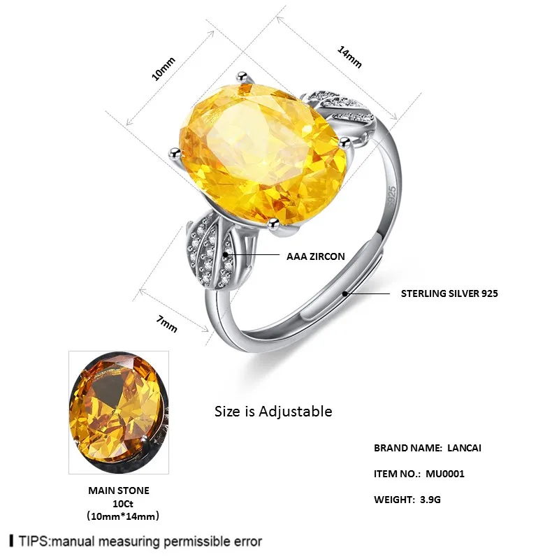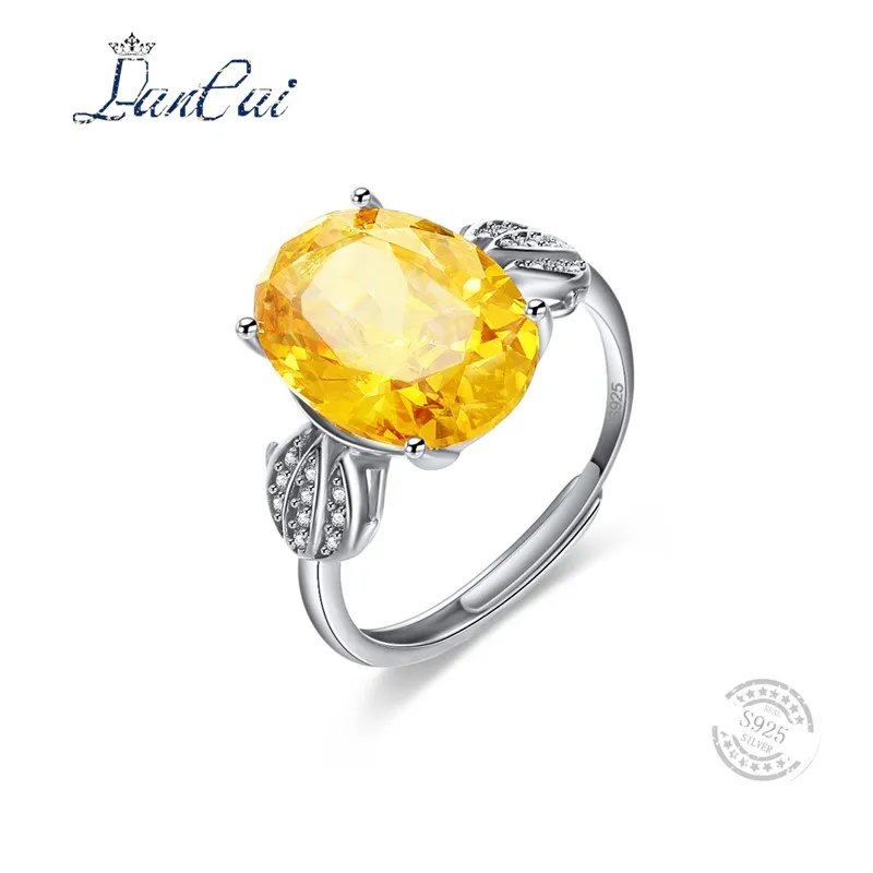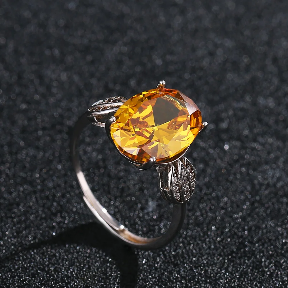Luxury Big Size Natural Gemstones 10ct Citrine Ring 925 Sterling Silver Inlaid White Zircon Ring for Women Fine Jewelry