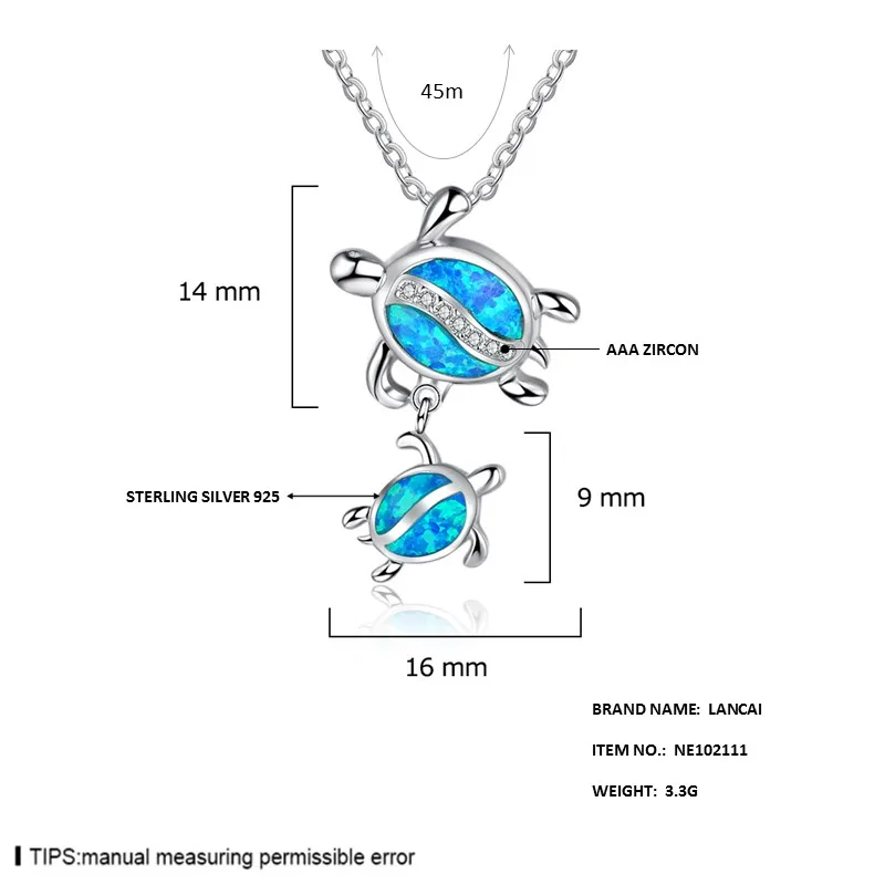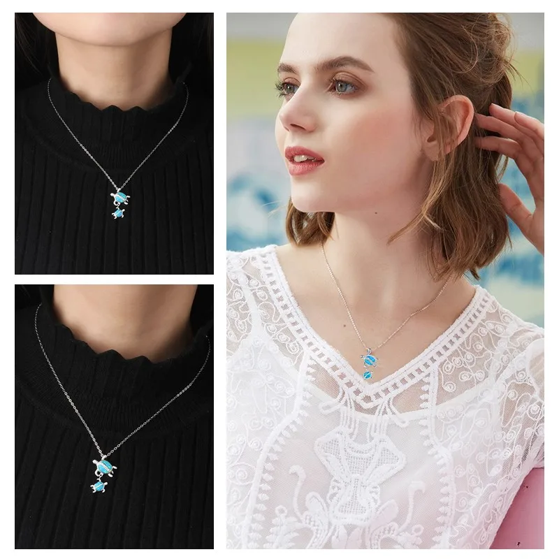 New Fashion Silver Inlaid Blue Fire Opal Cute Two Sea Turtles 925 Sterling Silver Parent-child Pendant Necklace for Women