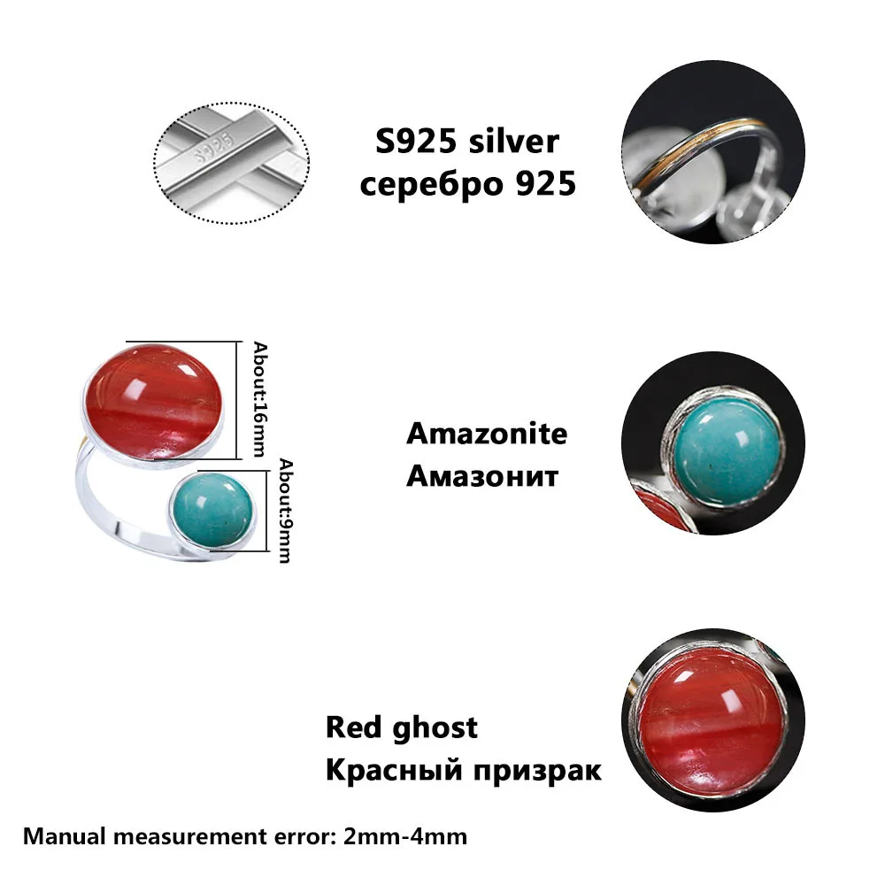 925 Sterling Silver Amzonite Ring Women Fine Jewelry Red Ghost Vintage ring Silver 925 Jewelry RG49115