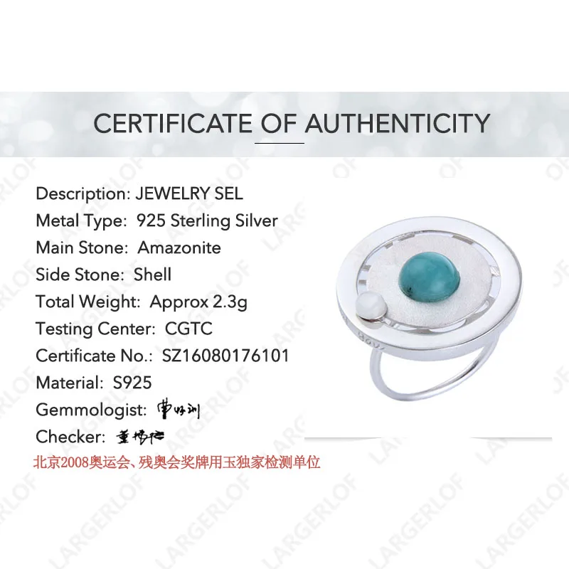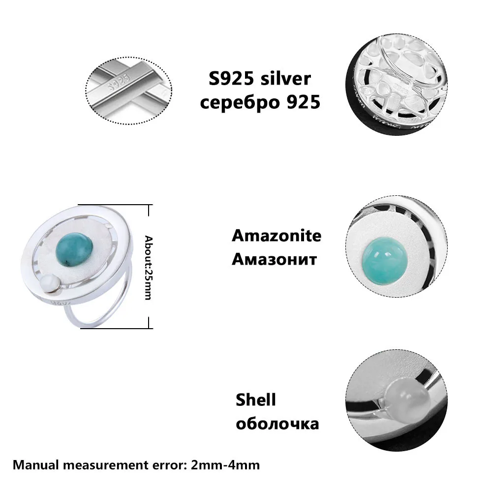 925 Sterling Silver Genuine Ring Amazonite Shell Silver 925 Jewelry Ladies Gemstone Ring RG49112