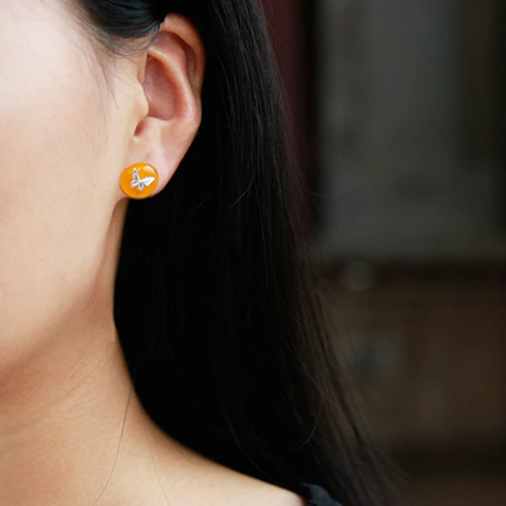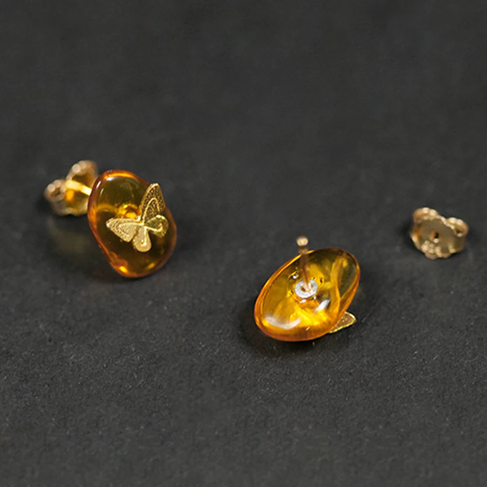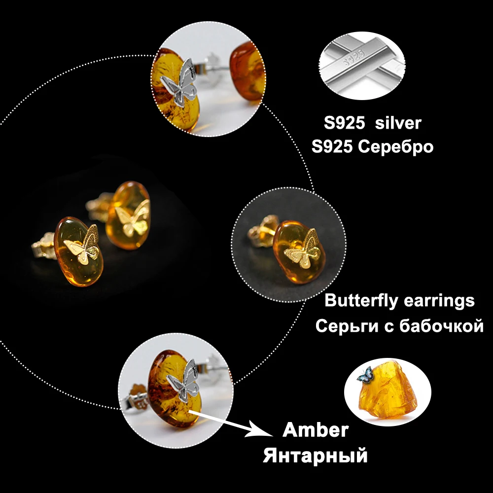 Handmade Natural Amber Earrings For Women Fine Jewelry 925 Sterling Silver Earrings AED35008